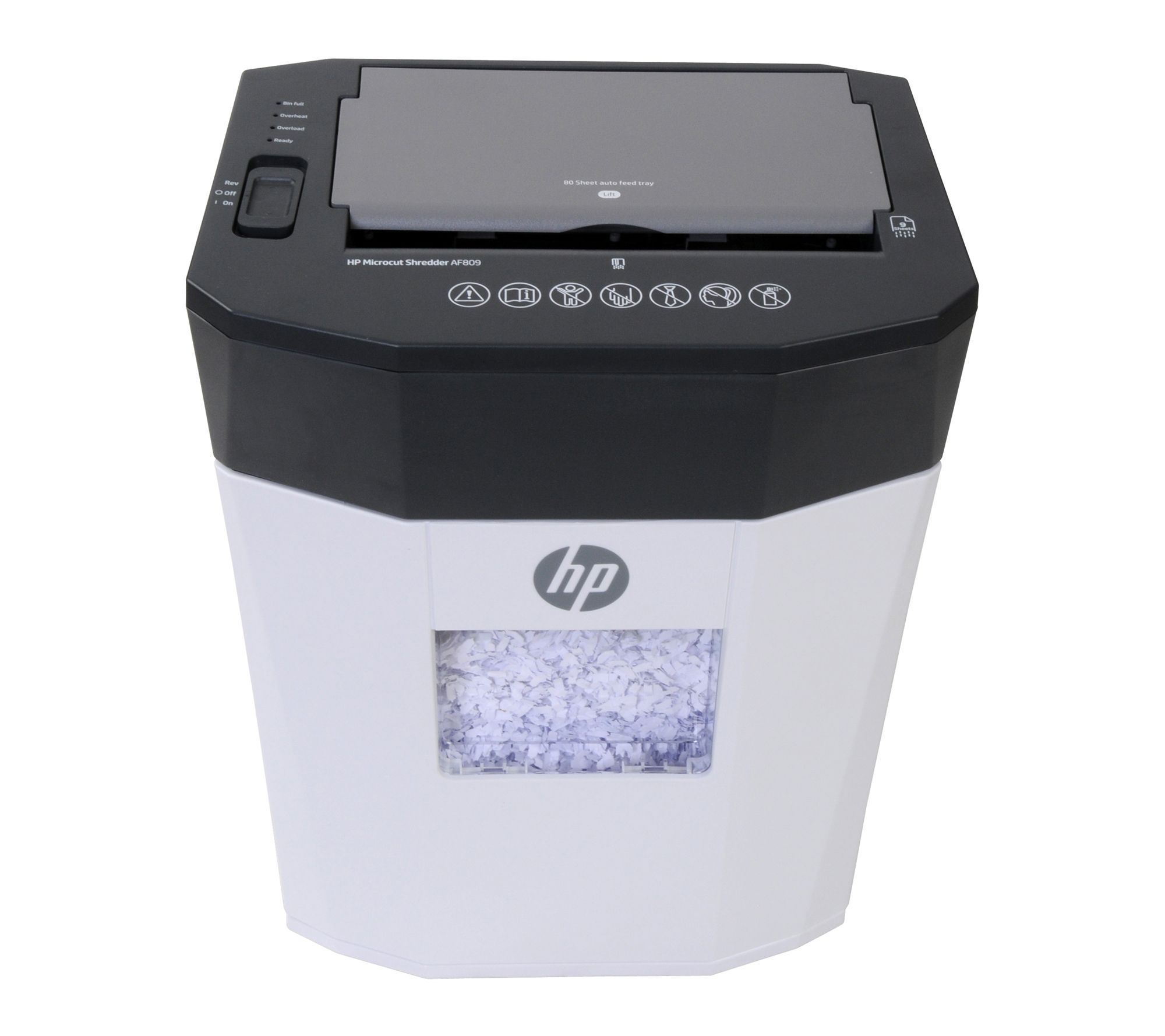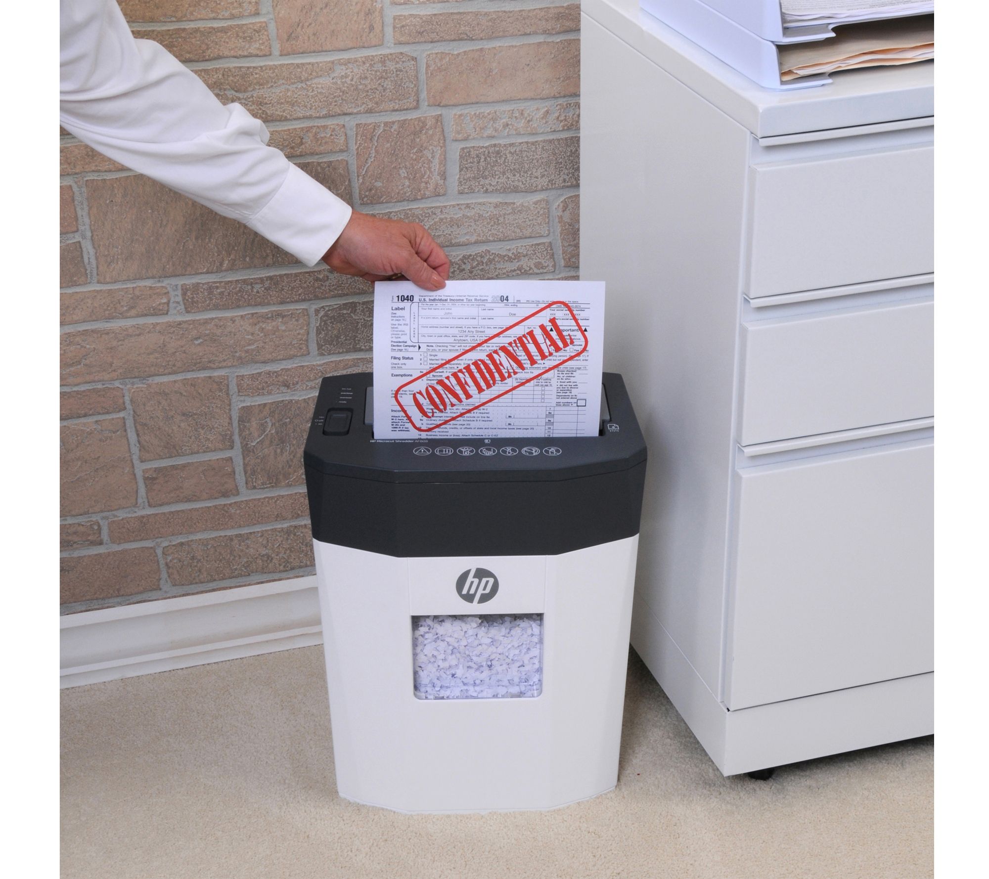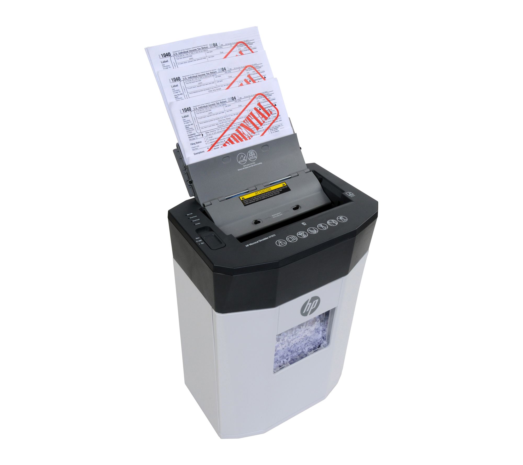 Tackle stacks of sensitive paperwork with ease using this microcut shredder, perfect for busy home offices or workspaces where security matters. Effortlessly shred up to 80 sheets from the autofeed tray or quickly dispose of credit cards and staples, all while the spacious pull-out bin keeps cleanup simple. From HP.