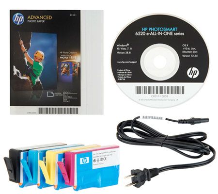 Includes Photosmart 6520 Wireless Printer; USB cable; one black, one cyan, one magenta, one yellow ink cartridge; HP Photo Creations; and additional software disc
