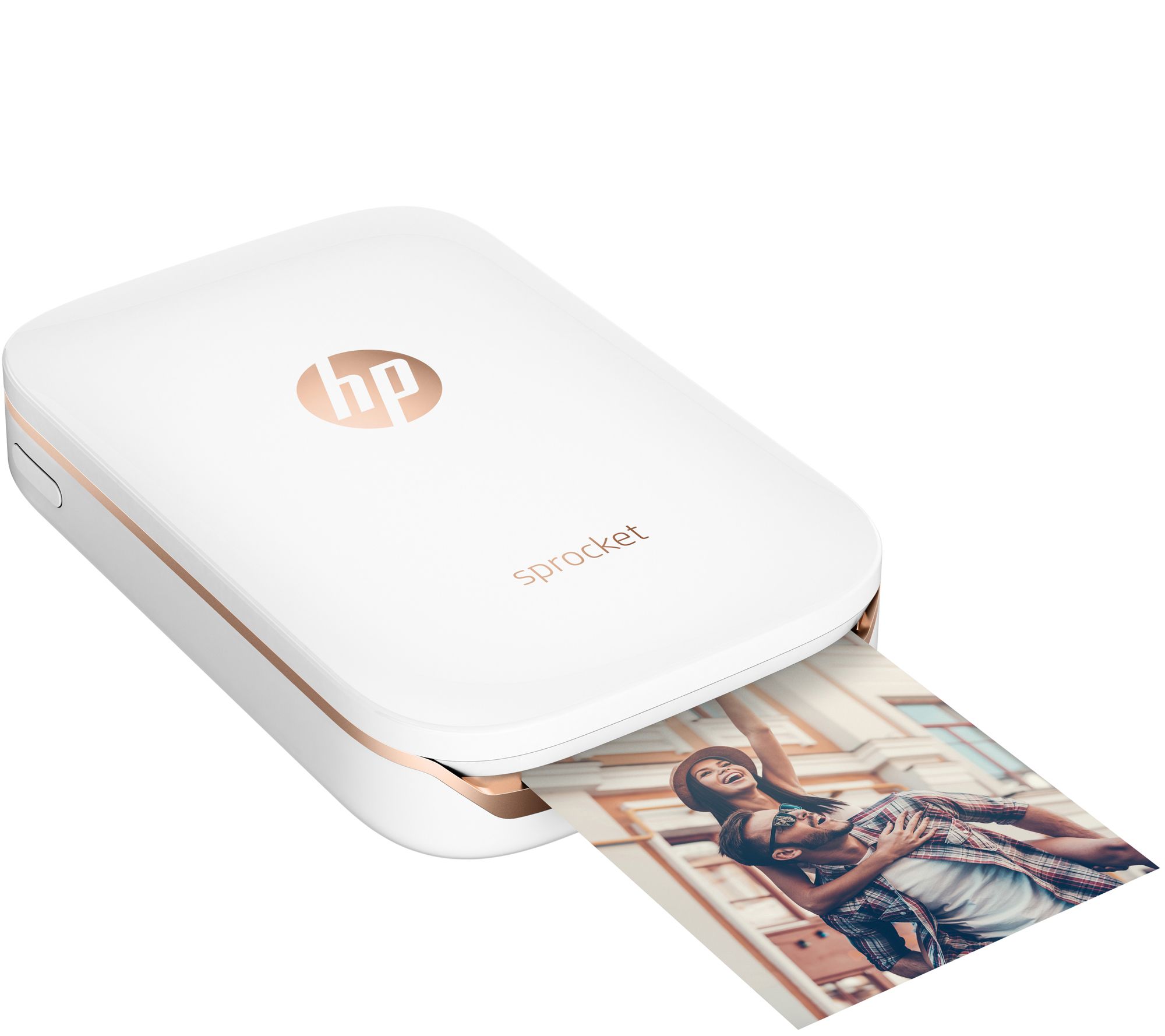 Meet the life of the party. HP's Sprocket portable photo printer is a merry little memory maker that produces 2x3 color photos in a snap. Super fun and simple to use, the pocket-sized device is a welcome guest at any gathering, instantly printing up pics straight from your smartphone so you can share tangible, take-home keepsakes. And there's no need for ink--the ultra-compact printer uses ZINK technology, taking the worry and wait out of the process. Ready to use right out of the box, it comes complete with a 10-pack of sticker-back paper, so you can get printing and sharing right away! From HP.