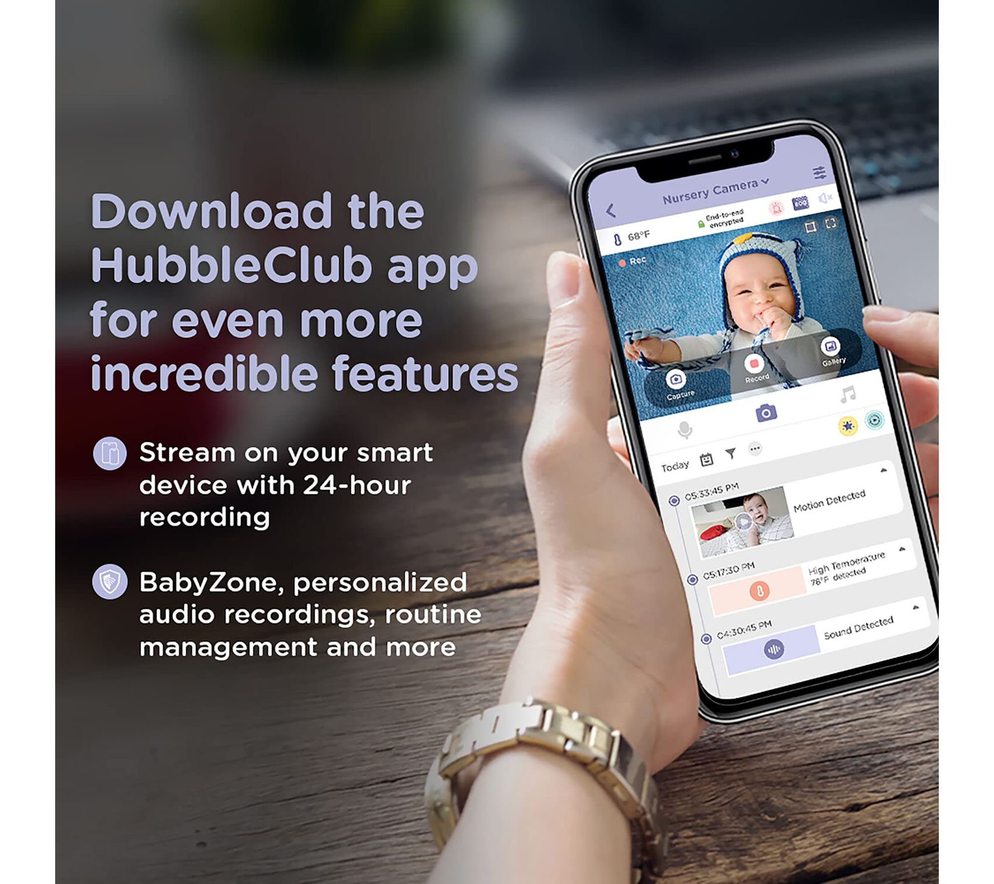 Keep an eye on your little one from anywhere with this 5-in-1 smart baby monitor that offers live HD video and instant sound or motion notifications right to your smartphone or tablet. The Hubble Free for Life subscription ensures you never miss a moment, giving you unlimited streaming, 24-hour motion-triggered recording storage, and powerful analytics like a Growth & Development Tracker. From Hubble.