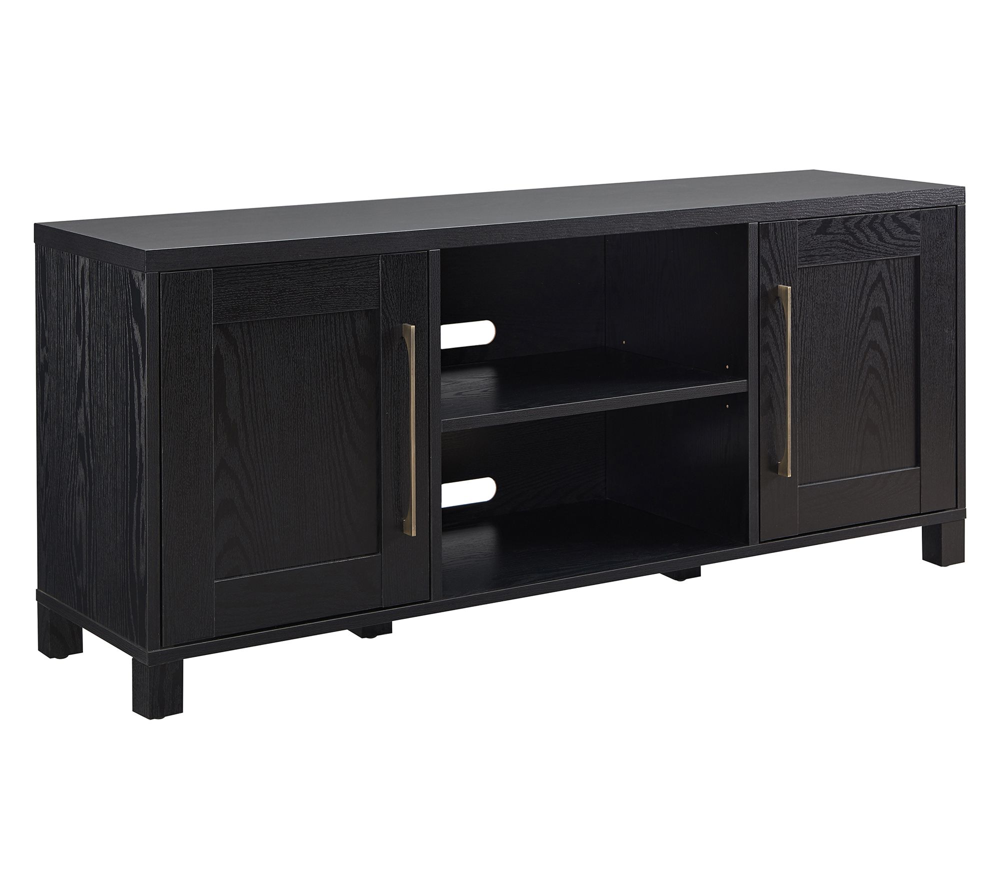 Movie nights and bingeworthy weekends find their backdrop on a streamlined TV stand that blends right in with your modern space. House your television along with media essentials on spacious open shelves, while cord management in back keeps everything neat from every angle. From HudsonCanal.