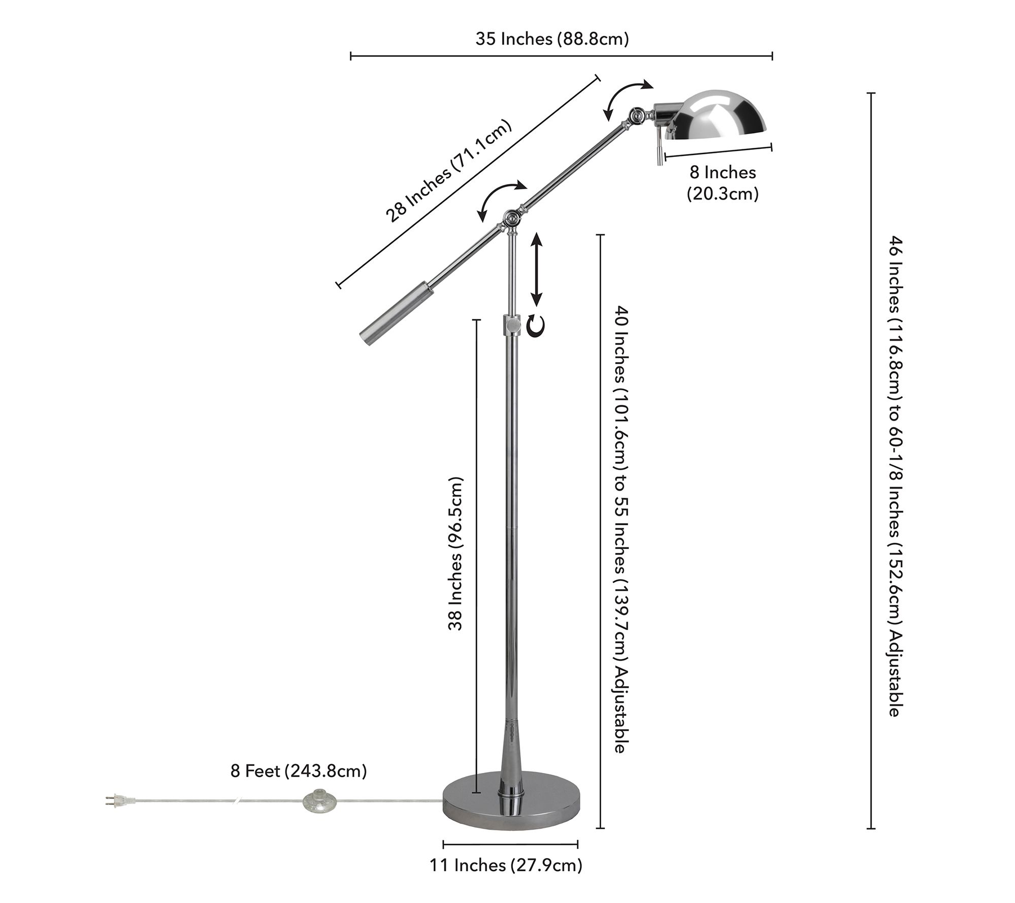 With its adjustable height and tilting design, this floor lamp makes it easy to cast light just where you need it -- whether you're reading in a cozy nook or creating a relaxing ambiance by your favorite chair. Its sleek lines and classic appeal fit seamlessly into bedrooms, offices, and living spaces alike. From HudsonCanal.