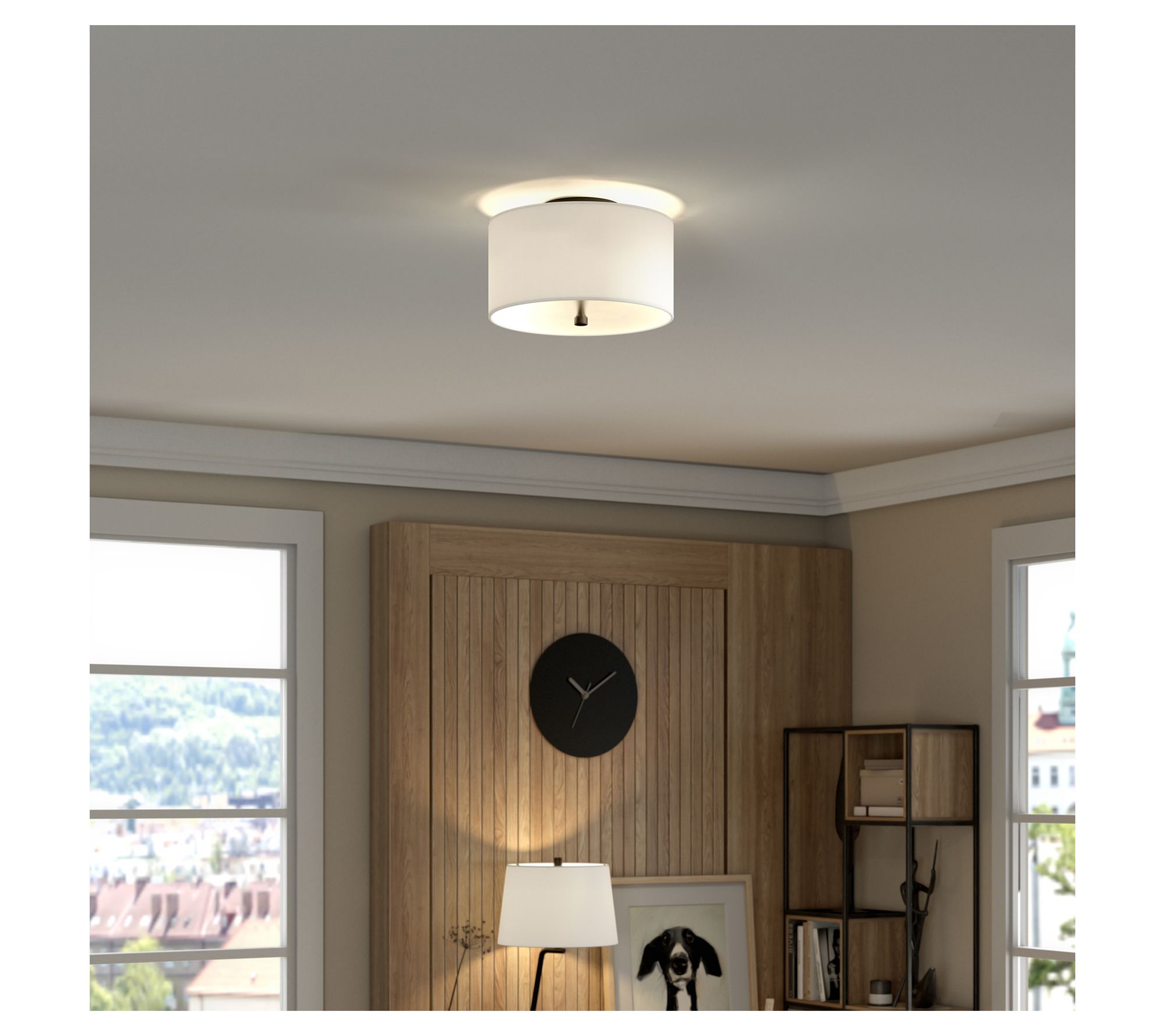 Soft, diffused light meets simple elegance with this flush mount, where a fabric shade gently filters illumination for a cozy, welcoming atmosphere. Whether highlighting a hallway or creating ambiance in your entryway, it beautifully blends with a wide range of interior styles for instant visual interest. From Hudson & Canal.