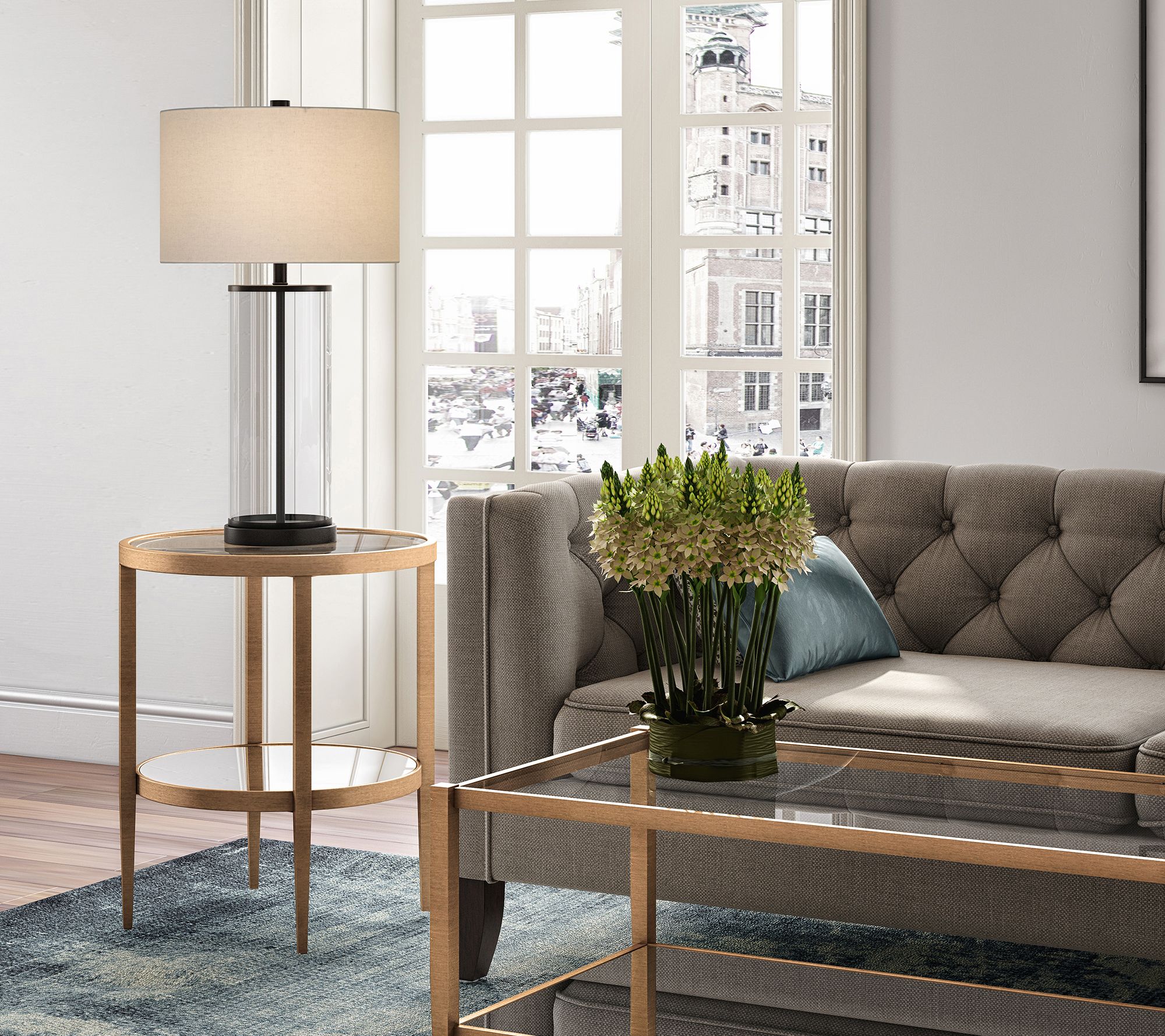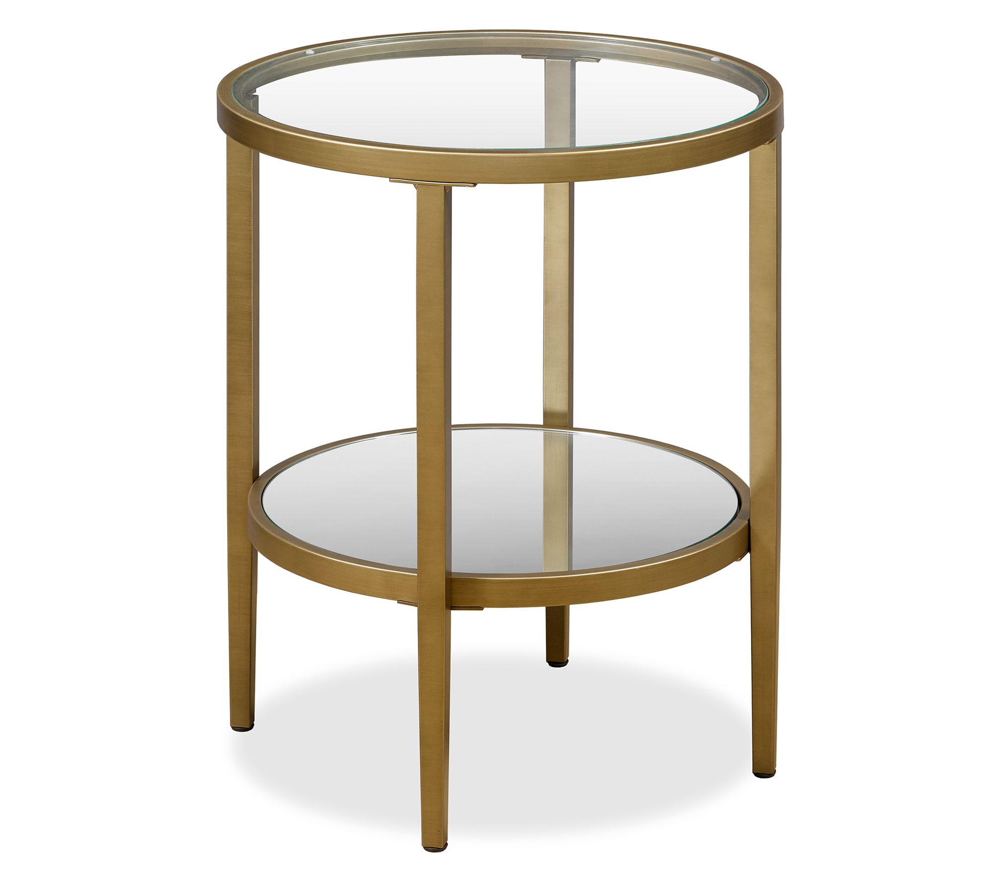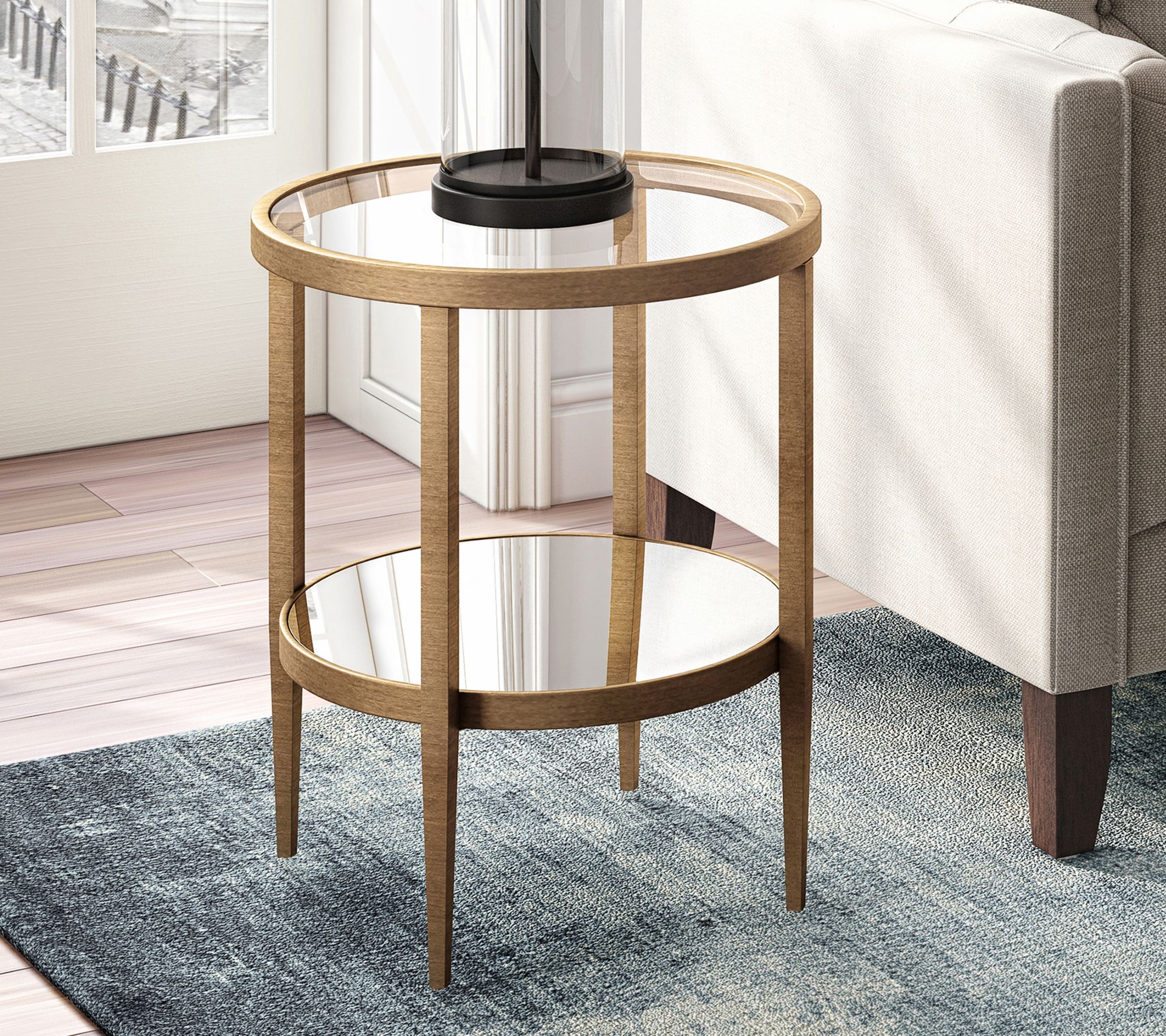 An eye-catching accent for entertaining or everyday elegance, this round side table features a tempered glass top to display a favorite lamp or floral arrangement, while a mirrored lower shelf reflects light and decor for added flair. Its airy silhouette pairs easily with a range of living room or den styles. From Hudson&Canal.