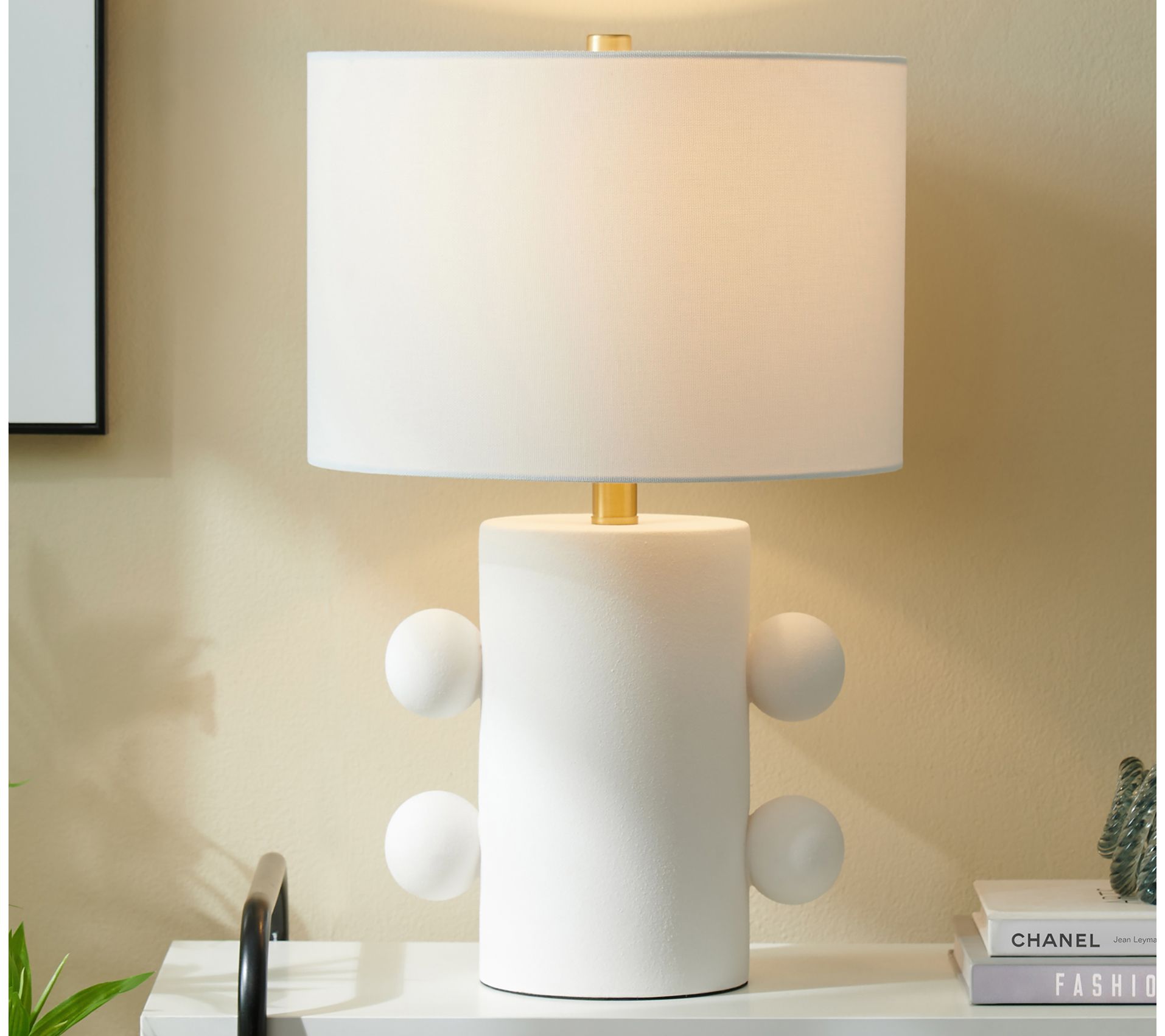 Modern spaces welcome more than just light -- they come alive with statement pieces that draw the eye. This ceramic table lamp delivers sculptural style, with playful orbs and a matte finish lending bold personality that works in a living room, bedroom, or office. Pair it with your favorite book or set it alongside a collection of treasures for a cozy, curated feel. From HudsonCanal.