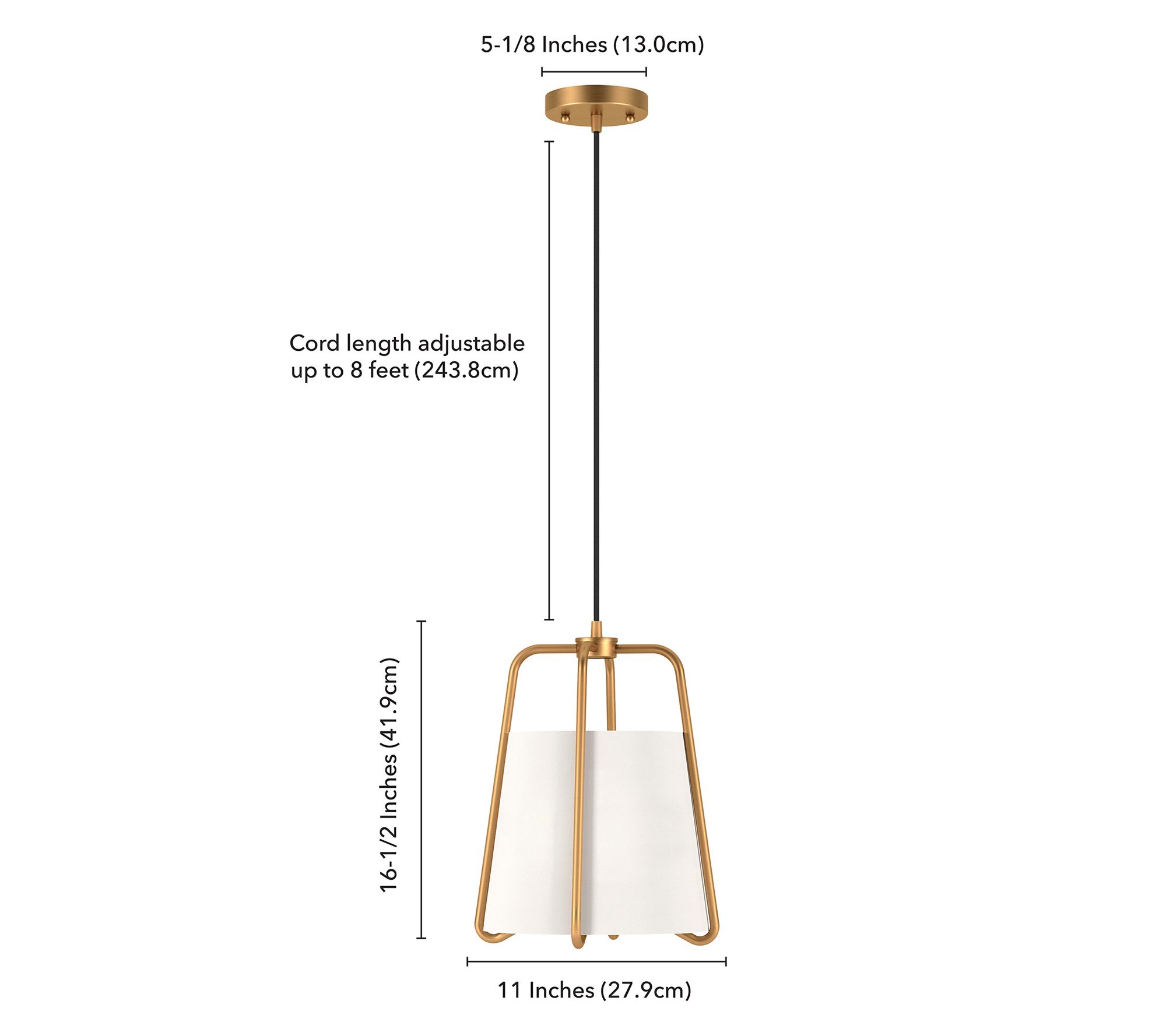 Mid-century style shines with this pendant light, where a soft white fabric shade glows against a clean-lined metal frame. Suspend it above your dining table, in your foyer, or to warm up a reading nook -- its adjustable cord lets you tailor the look to fit your space. From Hudson&Canal.