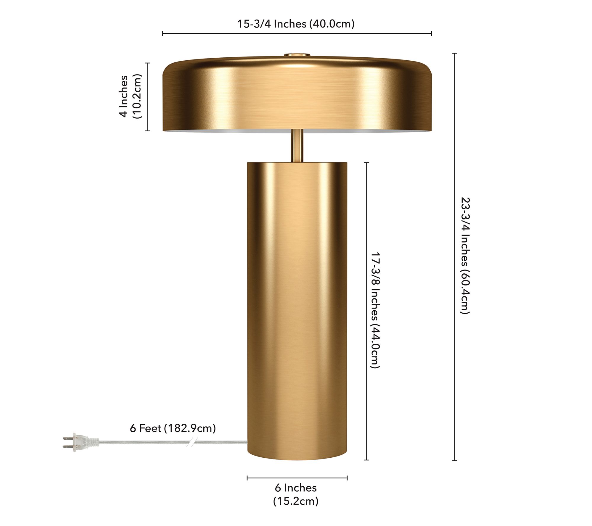 A bold mix of mid-century charm and modern polish, this table lamp brings sculptural style and warm glow to any corner -- be it your favorite reading chair or beside the bed. The dramatic metal drum shade paired with a tall, clean-lined column base makes a striking statement while keeping your space feeling sophisticated and bright. From Hudson & Canal.