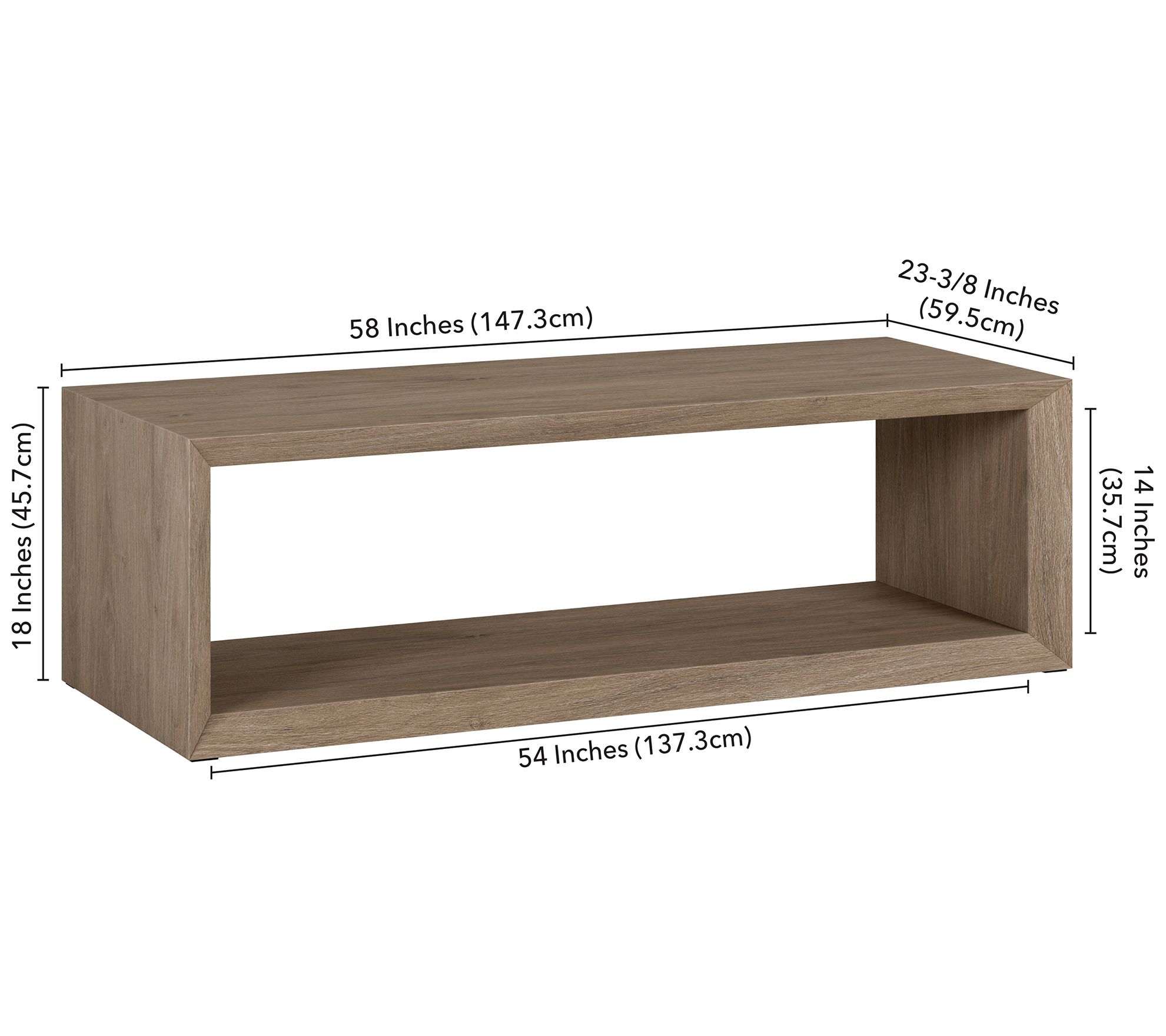 • Measures 58"W x 23.38"D x 18"H