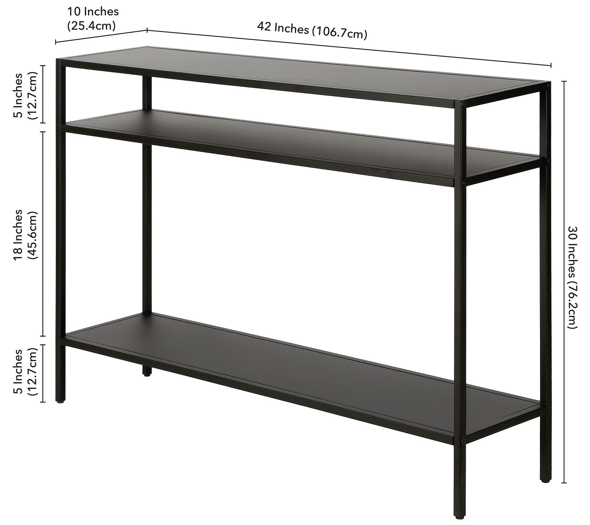 Industrial charm meets modern appeal as this streamlined console table creates a versatile accent in your living space. The rectangular silhouette slips easily into entryways or behind sofas, while metal shelves offer just the right surface for decor pieces and treasured finds. Show off greenery, art, or lighting -- this piece makes it simple to refresh your look. From HudsonCanal.