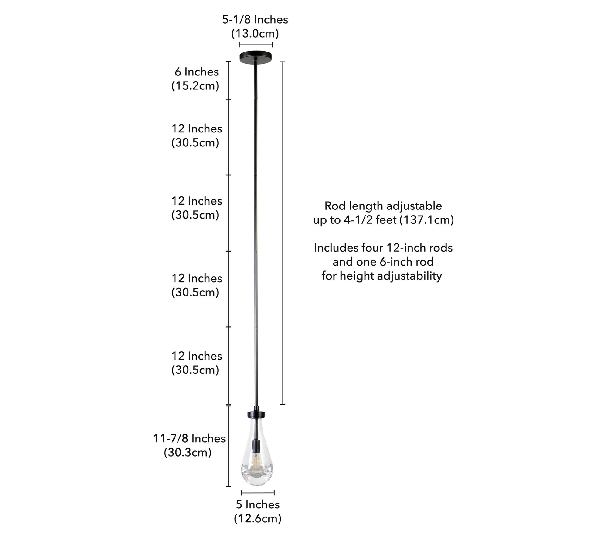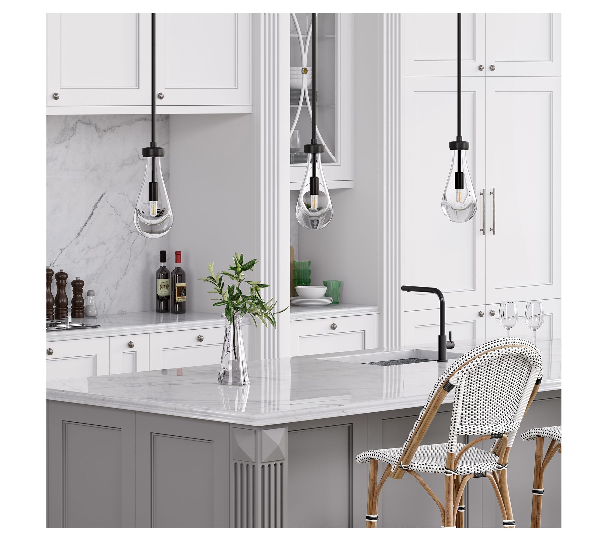A classic teardrop silhouette brings elevated style to your home, as the clear glass shade and contrasting metal base create a striking focal point above your kitchen island or entryway. The thickened glass bottom adds a touch of intrigue, while adjustable rods offer flexibility so you can tailor the pendant's height to fit your space. From Hudson&Canal.