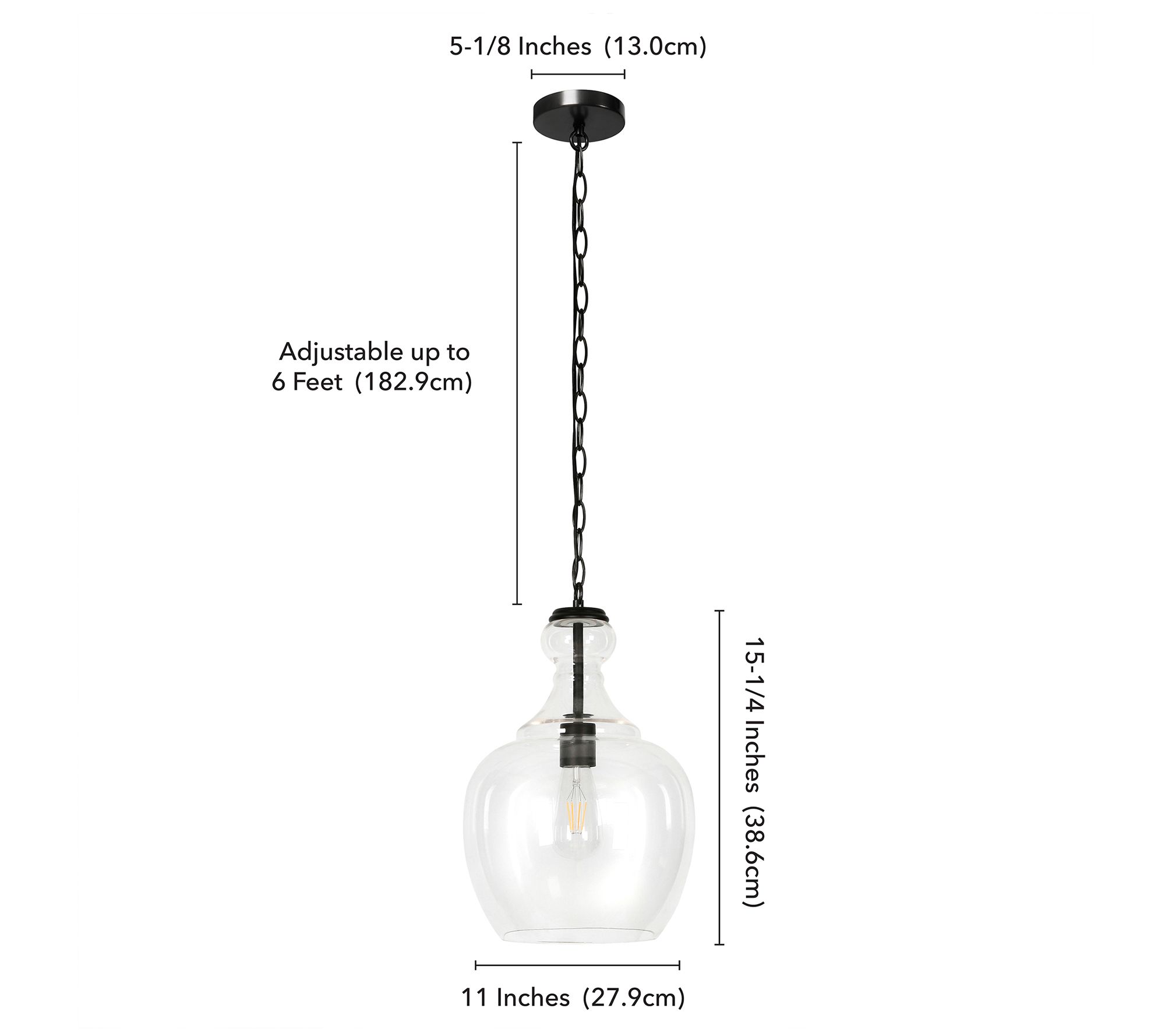 • Clear glass shade with adjustable hanging cord
