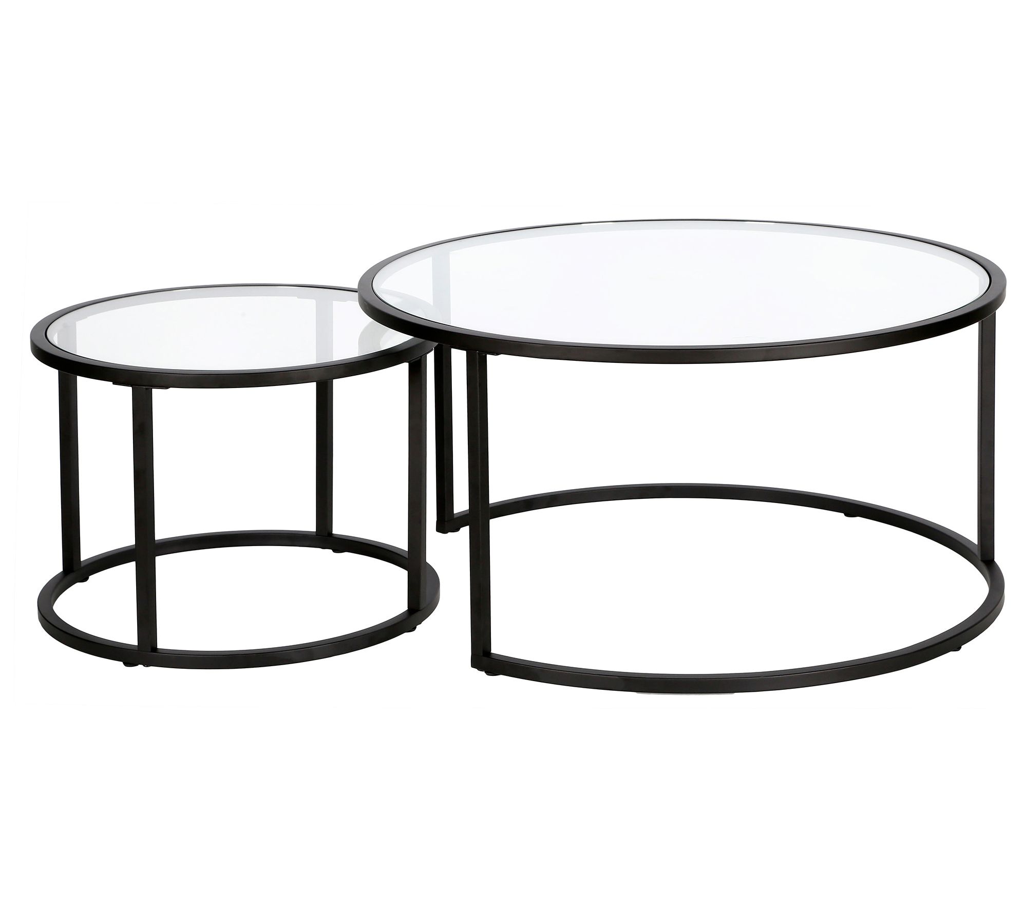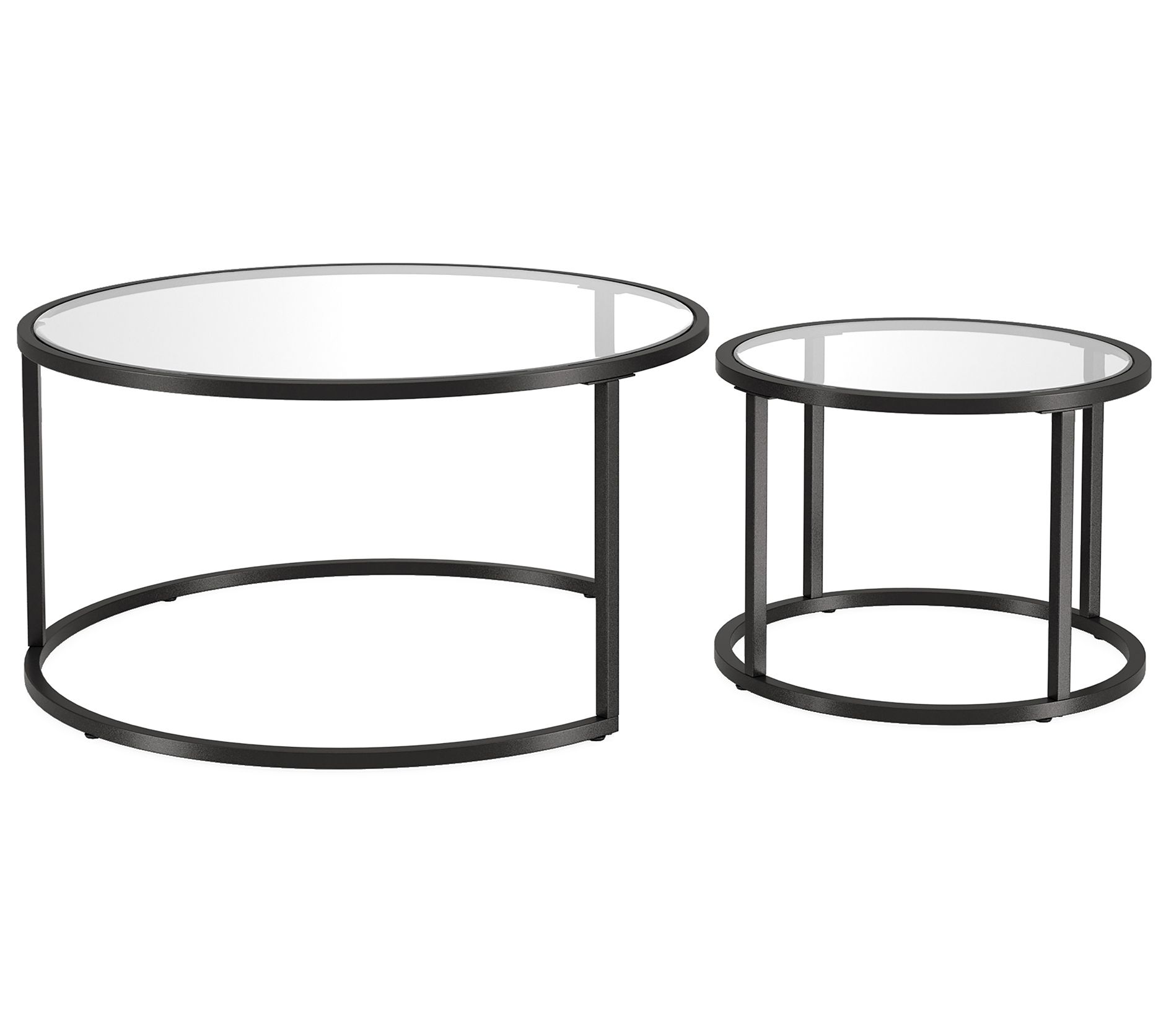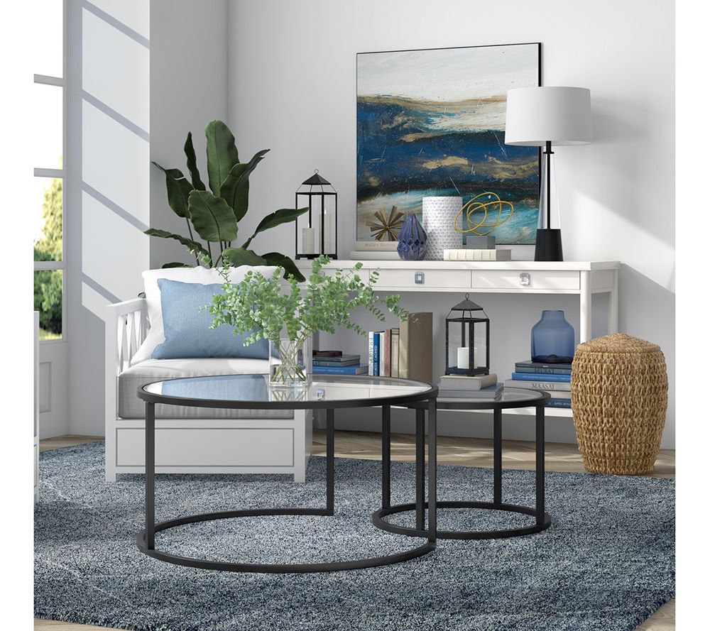 Imagine a stylish living room with the Hudson&Canal Watson round nested coffee table as its centerpiece. These versatile tables can nest together or separate for additional surface space, making them perfect for entertaining or everyday use. Their bold, linear design and tempered glass tops effortlessly enhance any color scheme or decor style, adding a modern contemporary touch to your home. From Hudson&Canal.