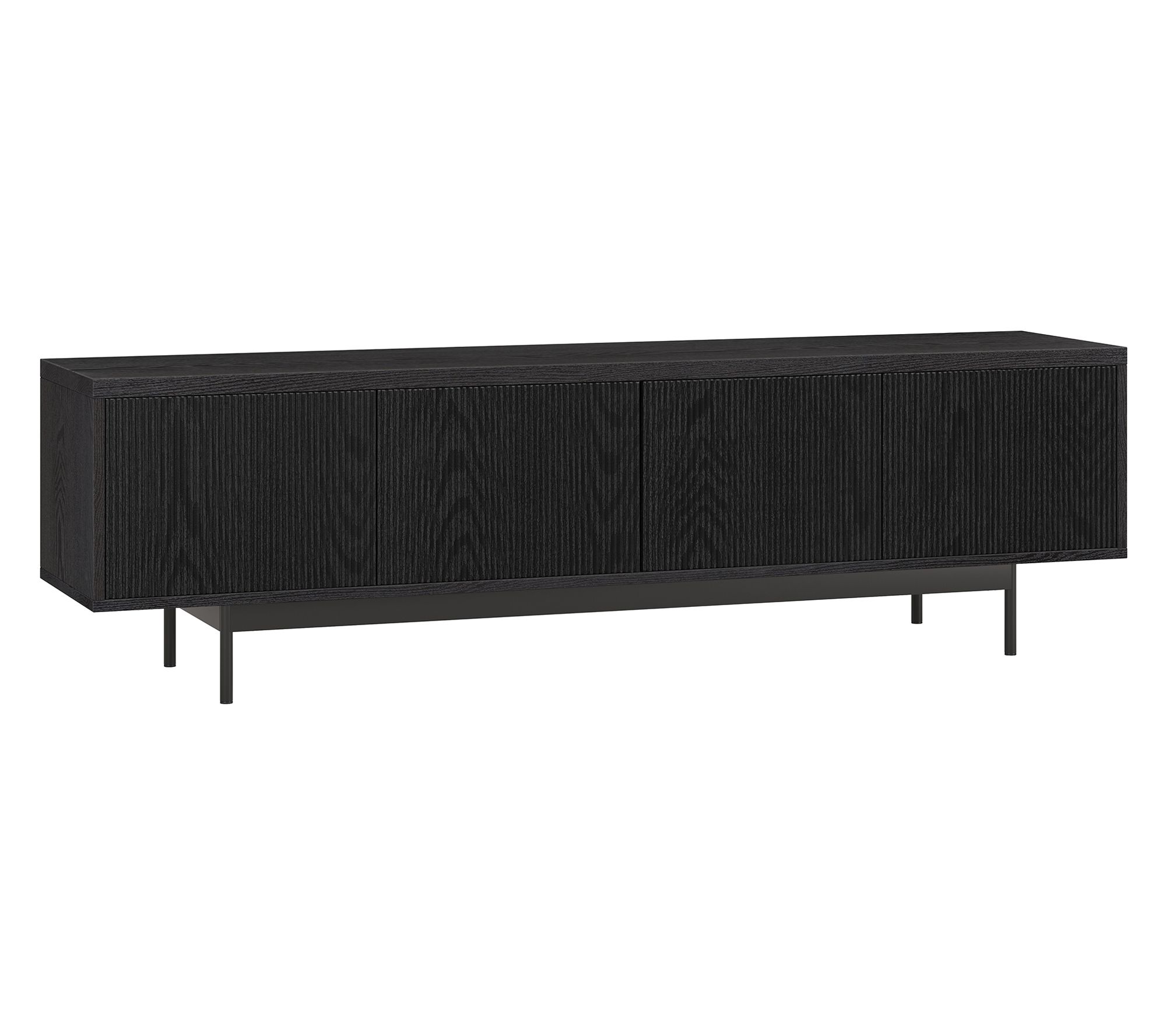 A well-organized living space sets the tone for relaxation and entertaining alike. The sleek silhouette, accented by wood grain and textured doors, offers plenty of concealed storage for electronics, books, or games -- keeping everyday clutter at bay. With its low profile, there's ample space above for a wall-mounted TV or your favorite artwork. From HudsonCanal.