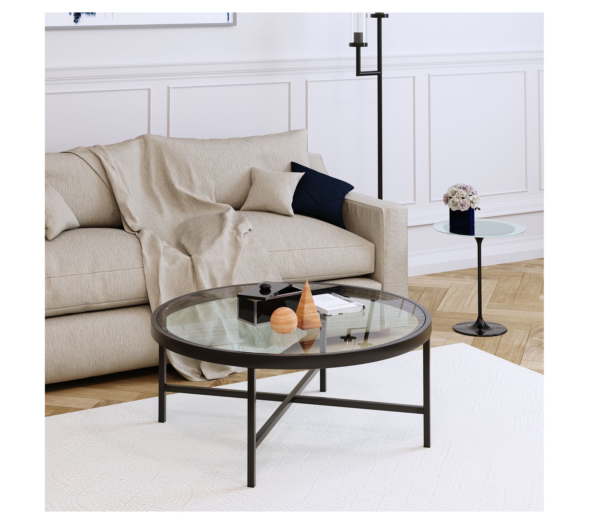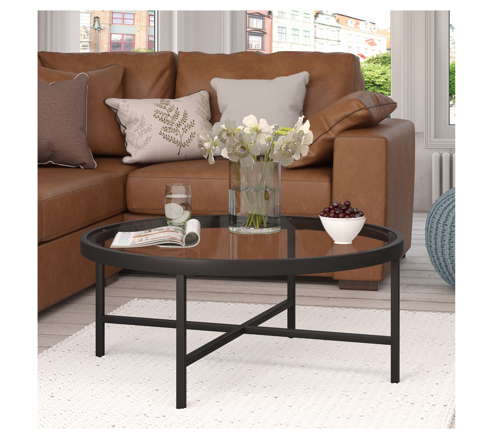 Hudson&Canal Xivil 36" Wide Round Coffee Tablewith Glass Top