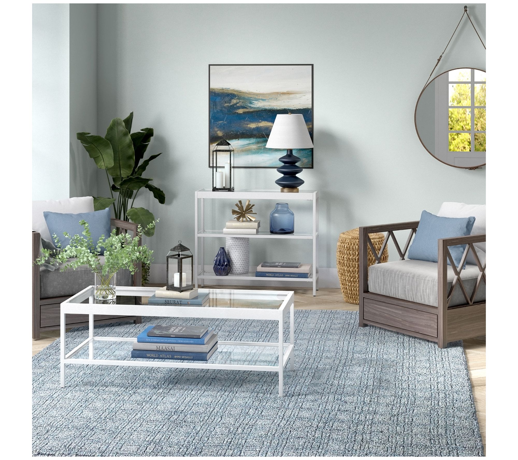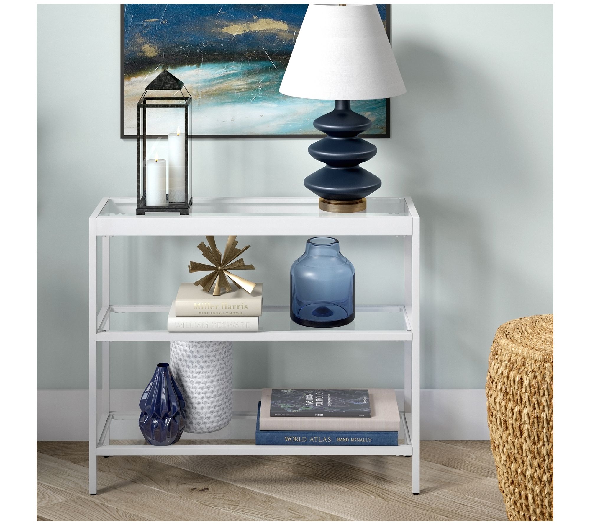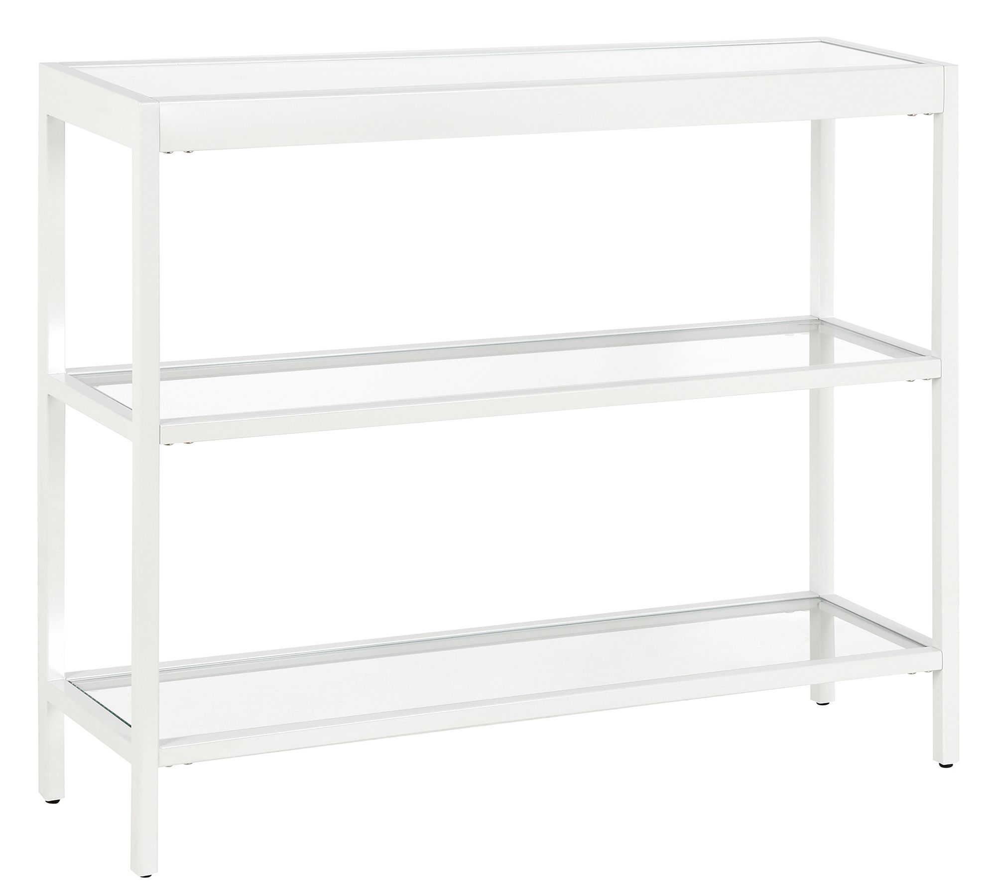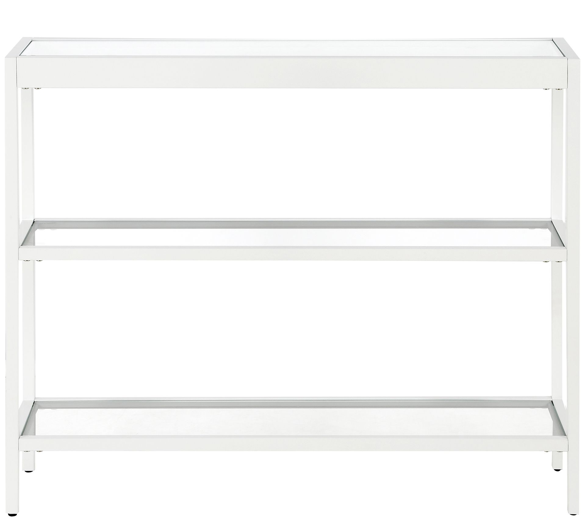 Your home decor will be complete with this streamlined console table boasting durable tempered glass surfaces to support everything from potted plants to photos and collectibles. From Hudson & Canal.