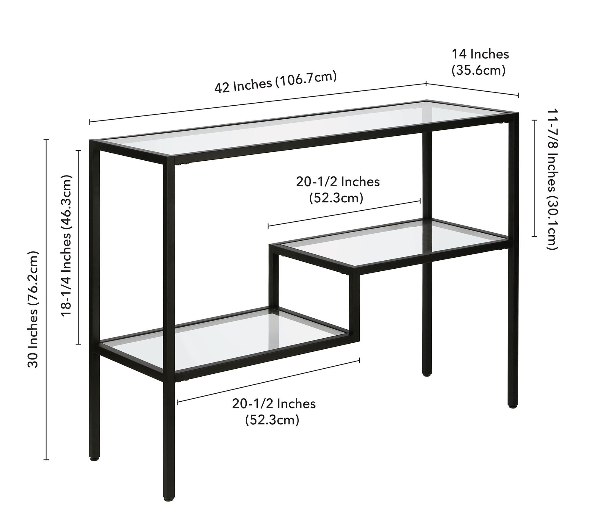 • Measures 42"W x 14"D x 30"H; Supports up to 40 lbs
