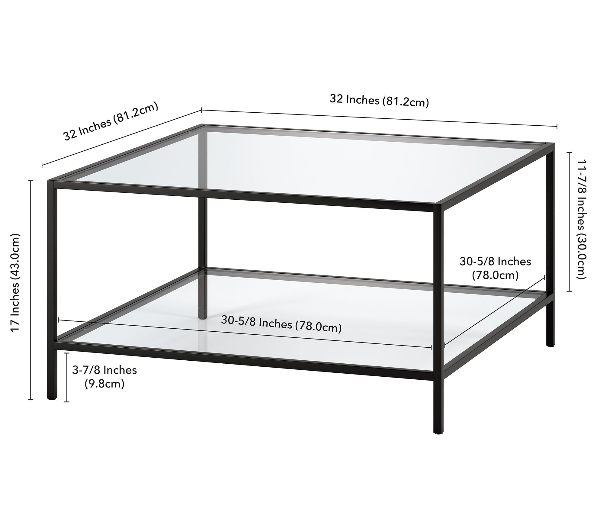 Hudson & Canal Sivil 32" Square Coffee Table With Glass Shelf