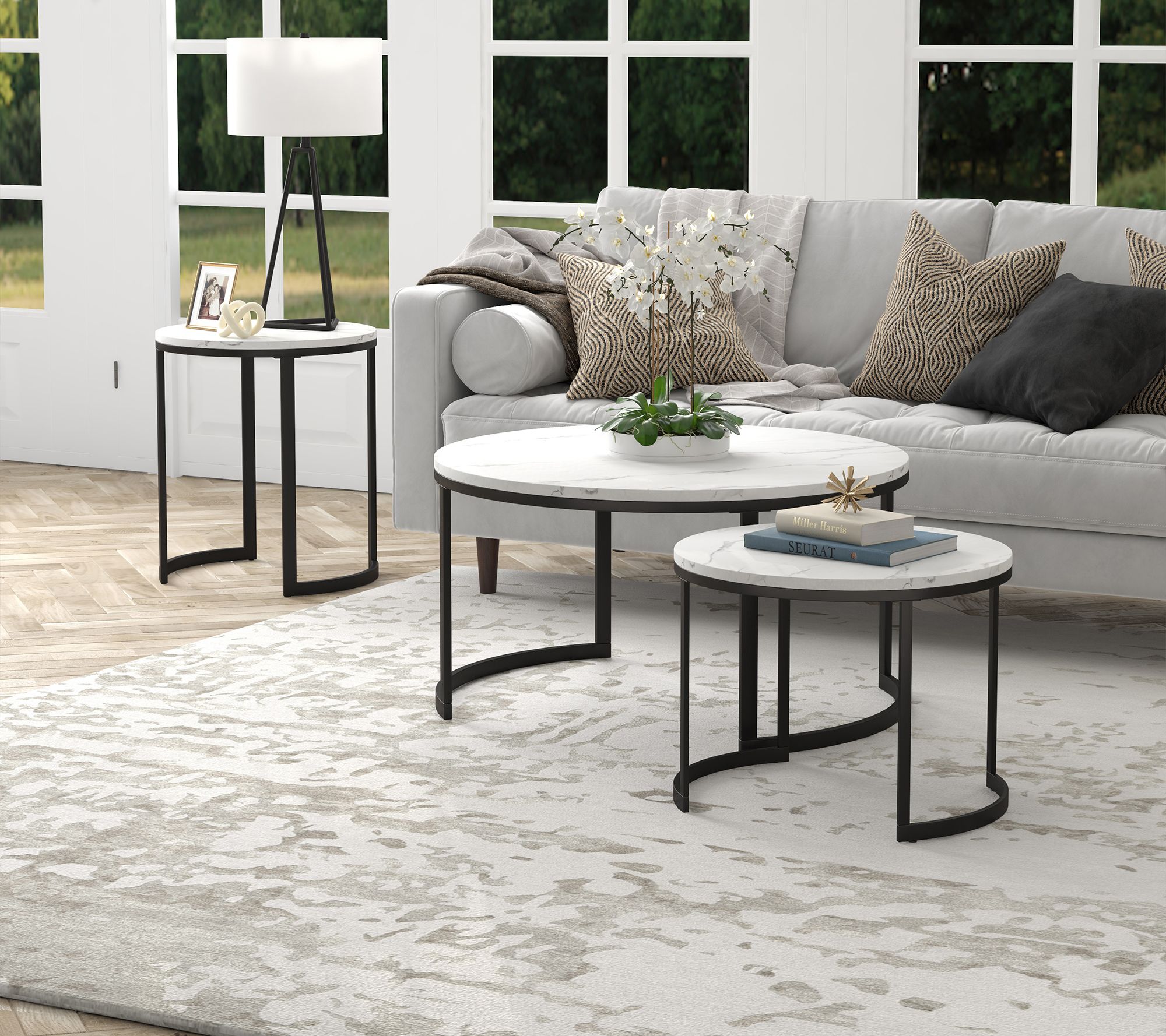 Hudson & Canal Mitera Nested Coffee Table with Faux Marble Top
