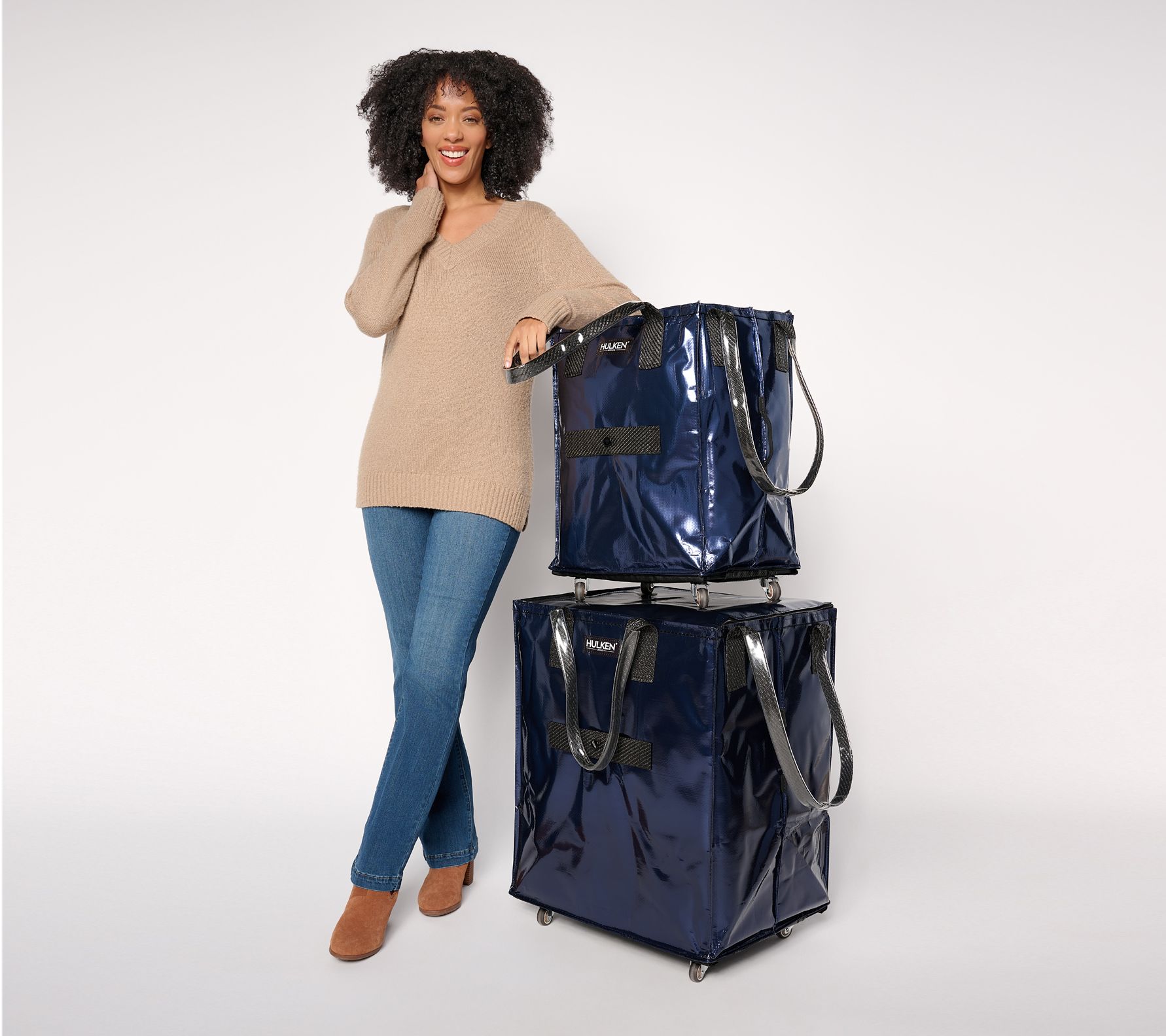 Places to go, things to do, stuff to schlep... take along the Hulken rolling tote bag to help with the heavy work. Made to effortlessly move items from point A to point B (and even point C), this lightweight wheeled wonder carries groceries, hobby gear, get-away garb, and whatever essentials you want.