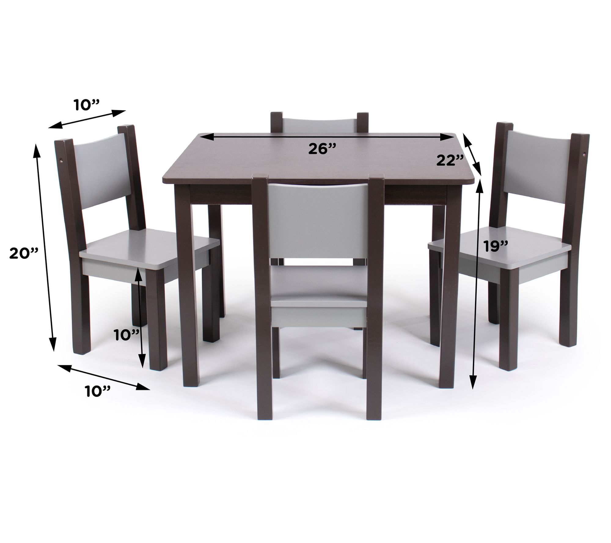 • Measurements: Table 24"W x 24"D x 17"H; Chair 12"W x 13"D x 20"H; Supports 50 lbs