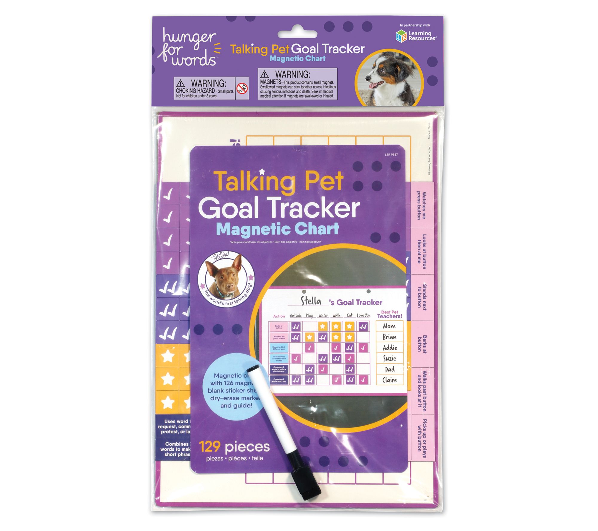 With a handy guide and magnetic pieces to follow your furry friend's progress, this pet goal tracker is the perfect way to watch your buddy's communication skills grow. From Hunger for Words.