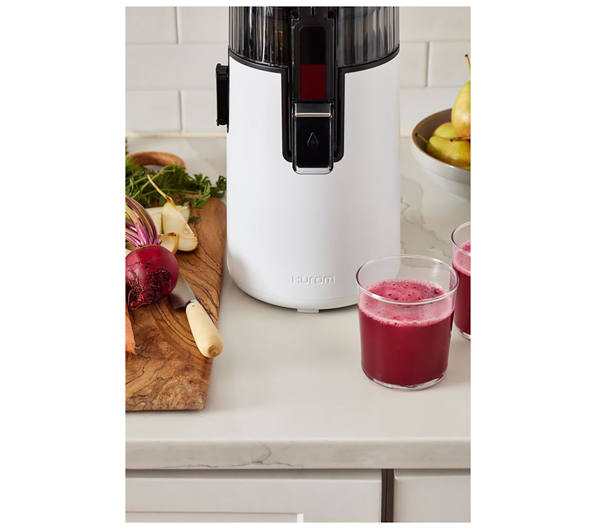 Experience the perfect balance of size and capability with the Hurom H70 Easy Clean slow juicer. Whether you're juicing for family or friends, its large self-feeding hopper and larger inlet make it easy to load and juice large amounts of produce. The innovative design minimizes cleaning time and effort, so you can enjoy high-quality, pulp-free juice with minimal hassle. From Hurom.