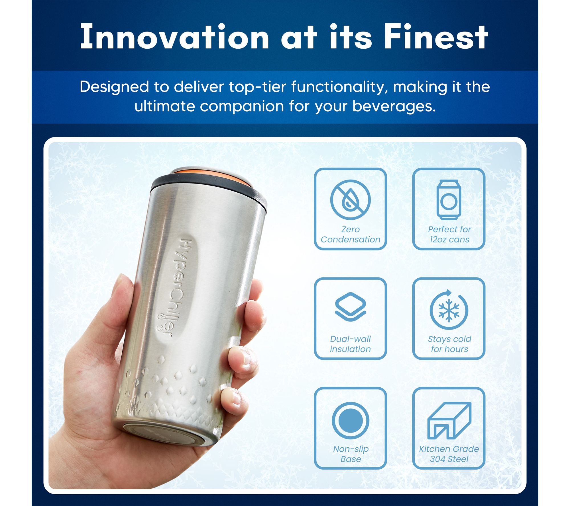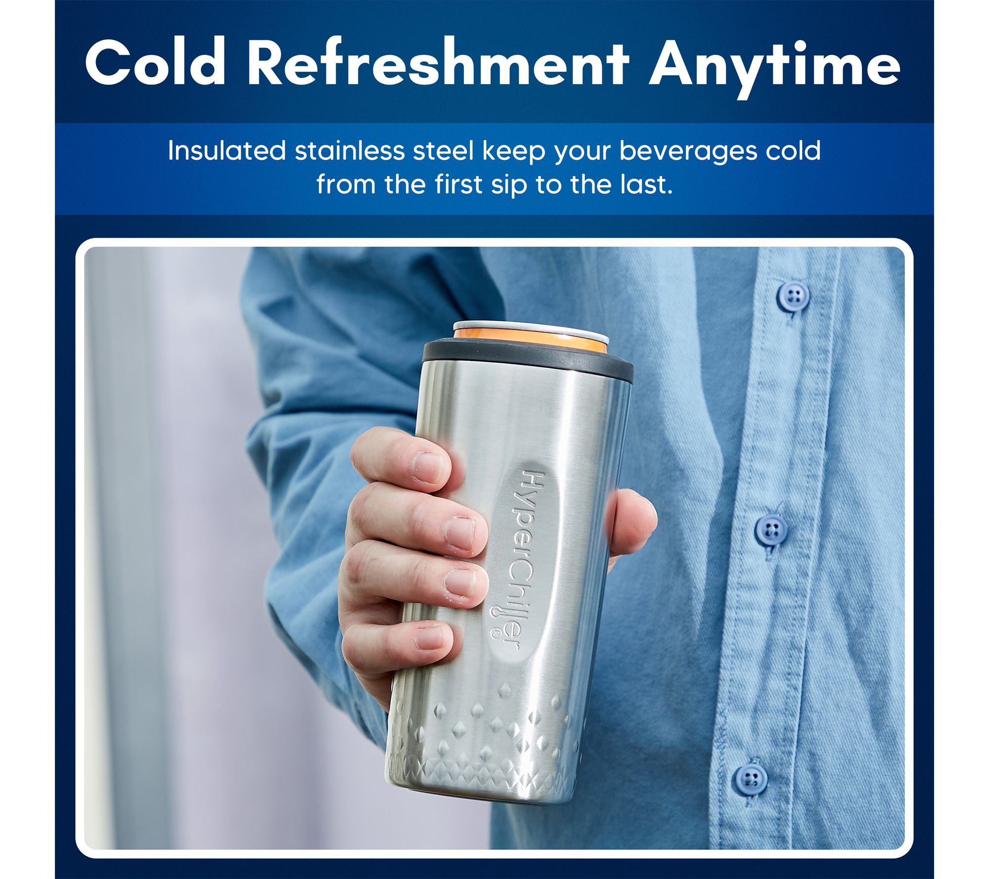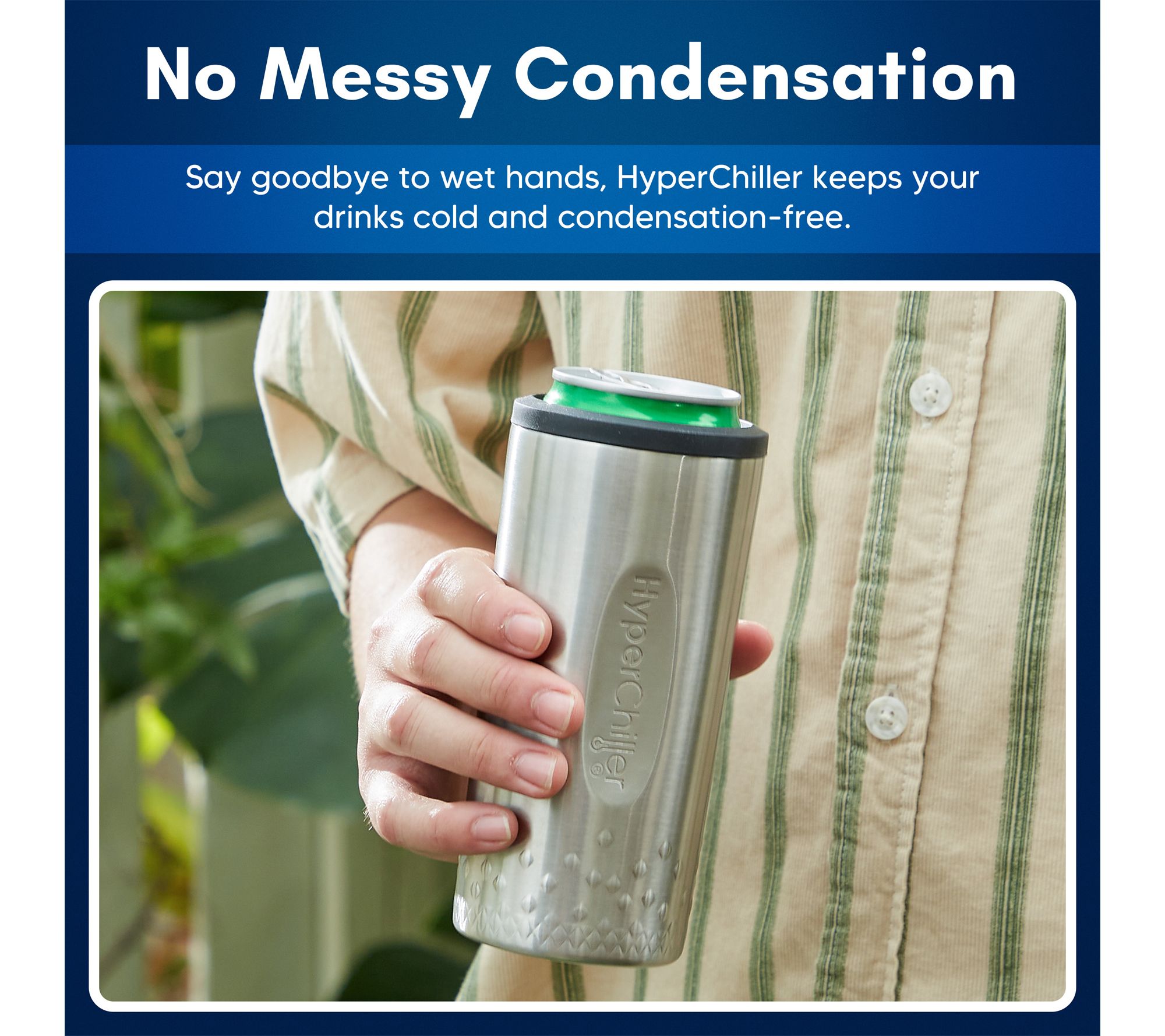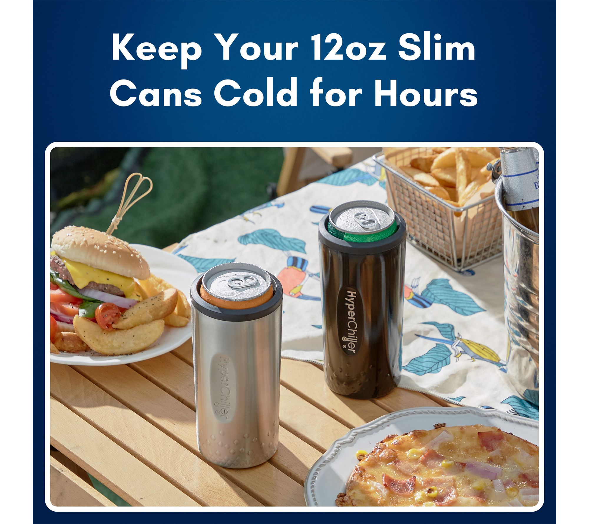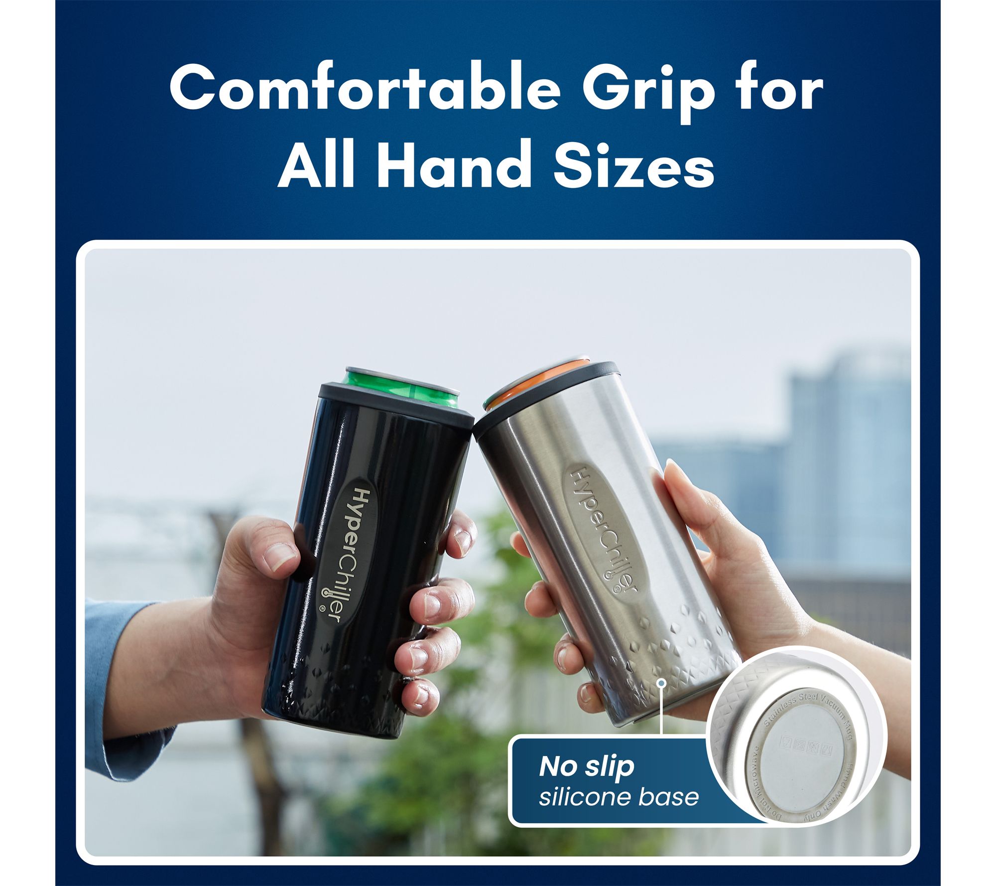 Whether you're heading to a backyard barbecue, relaxing at the beach, or camping under the stars, this HyperChiller SLIM keeps your 12-oz slim cans icy cold for hours without messy condensation. Its comfort grip and secure, non-slip design make enjoying your favorite coffee, tea, wine, or spirits effortless wherever you go. From HyperChiller.