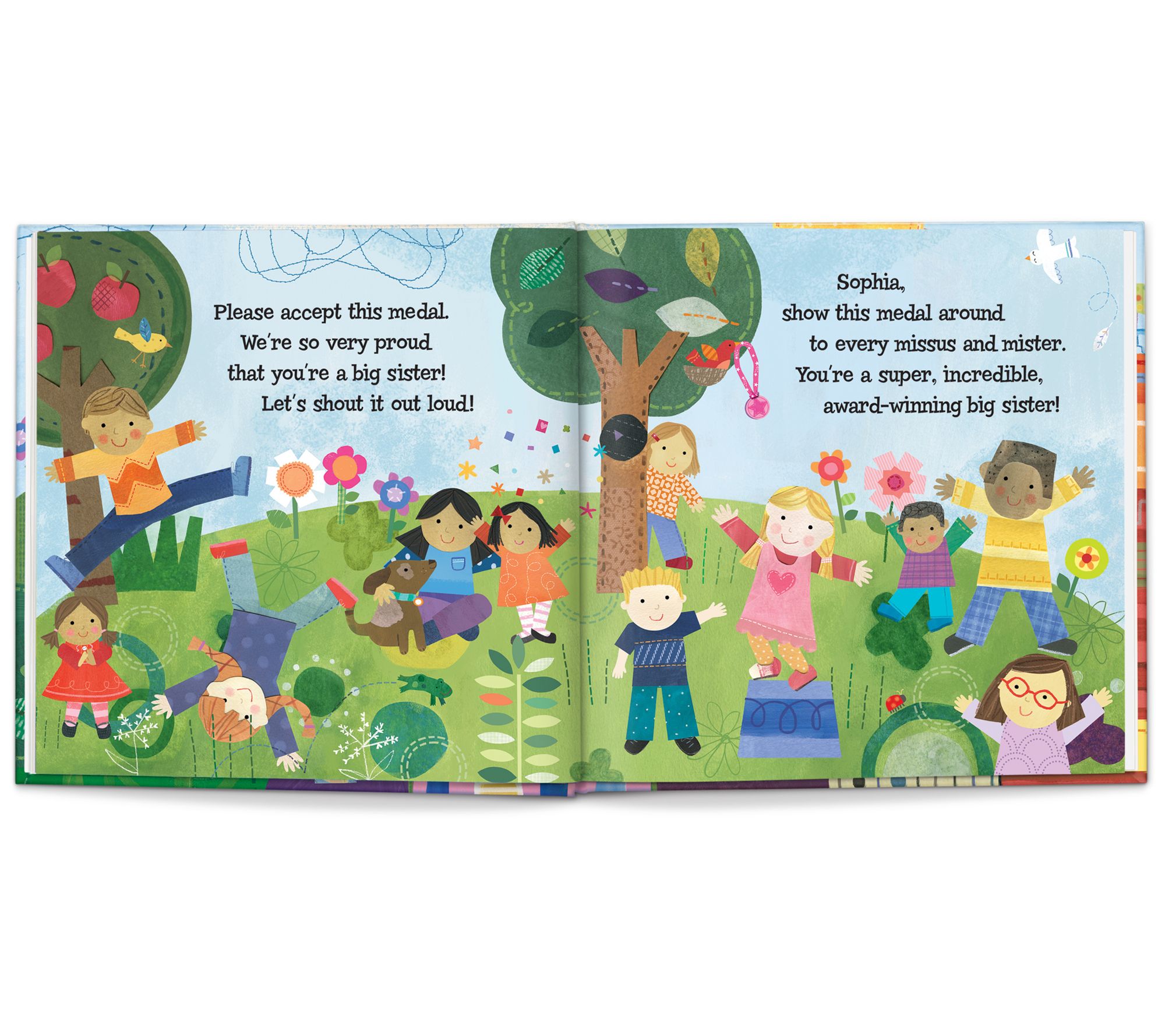 Busy with another baby on the way? Make sure big sister feels like a star, too, with this personalized book, from author Jennifer Dewing, that includes big sister's name and coordinating award medal that she can proudly wear around her neck.