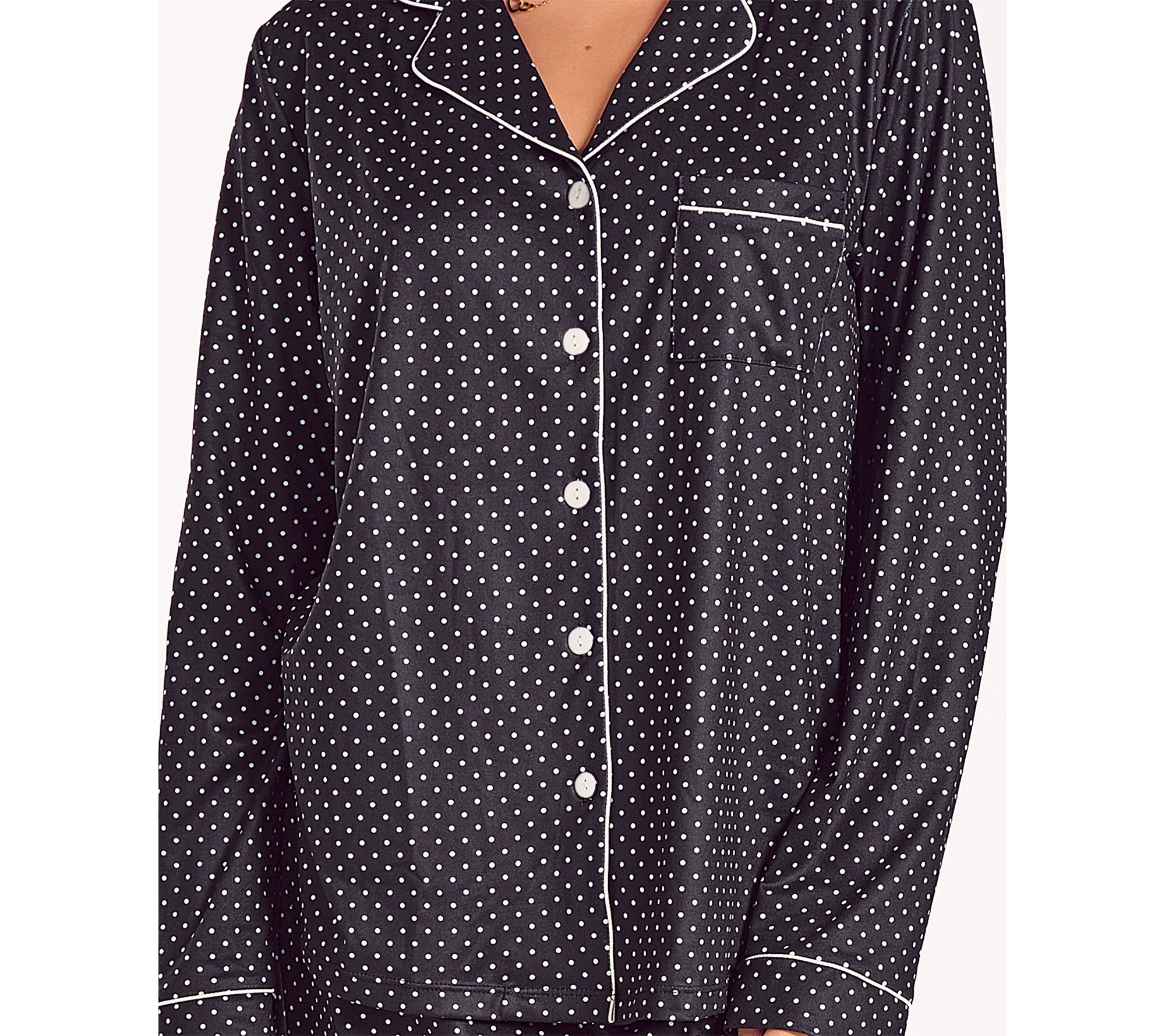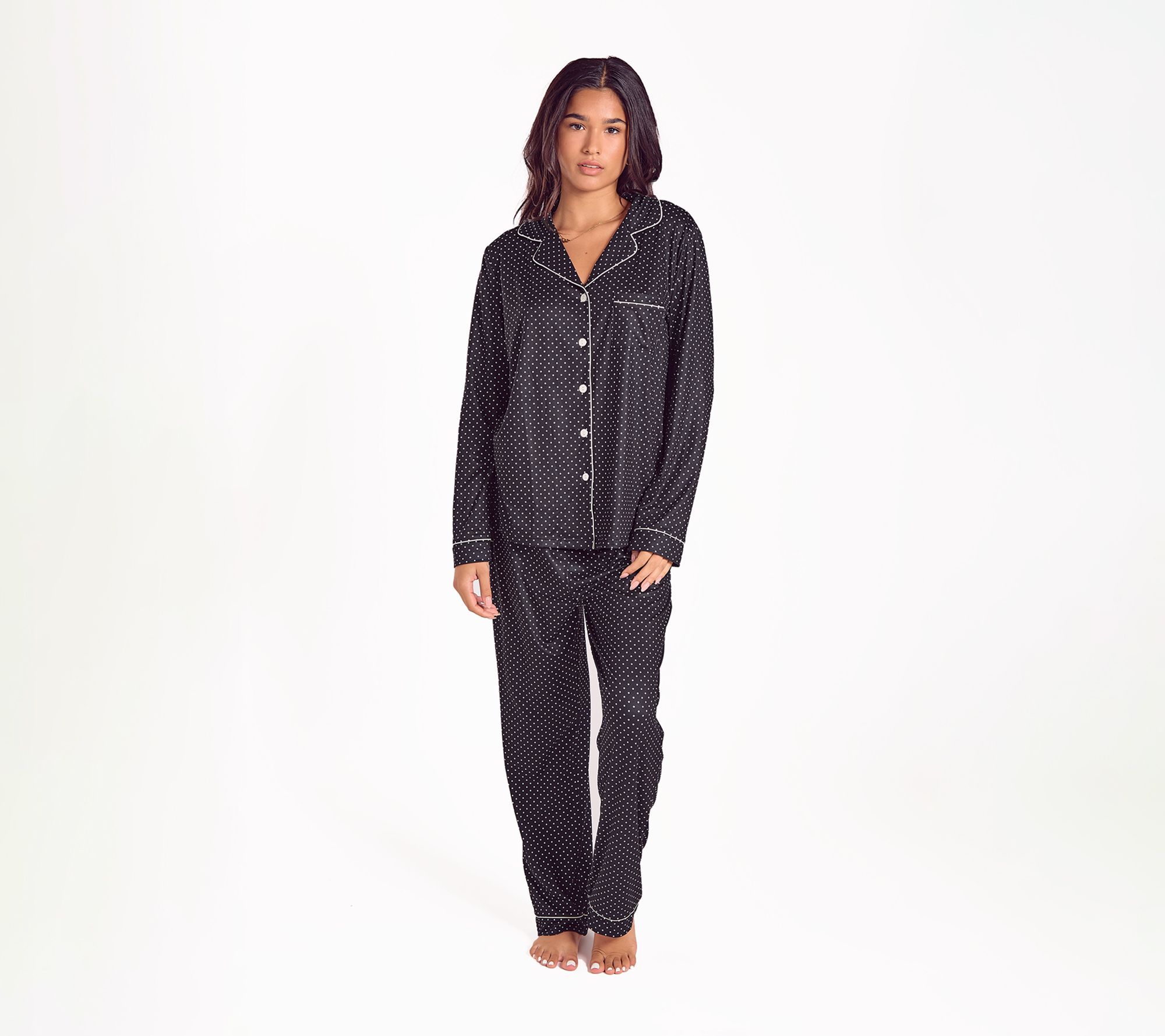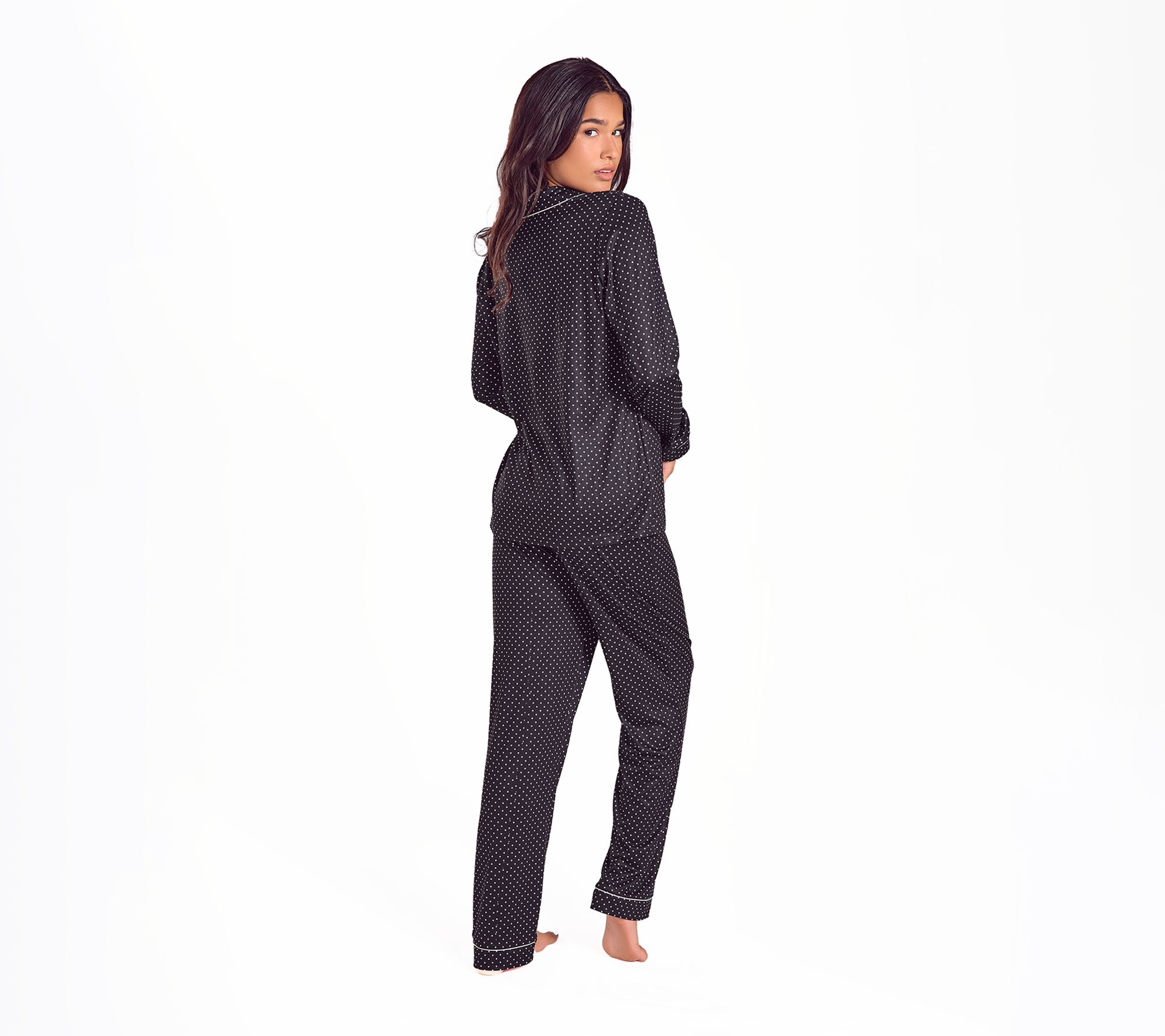 Whether you're winding down after a long day or savoring a slow weekend morning, this pajama set brings a touch of luxury to your nightly routine. The brushed knit fabrication feels soft and velvety, while the relaxed fit lets you move freely as you lounge or sleep. From iCollection.