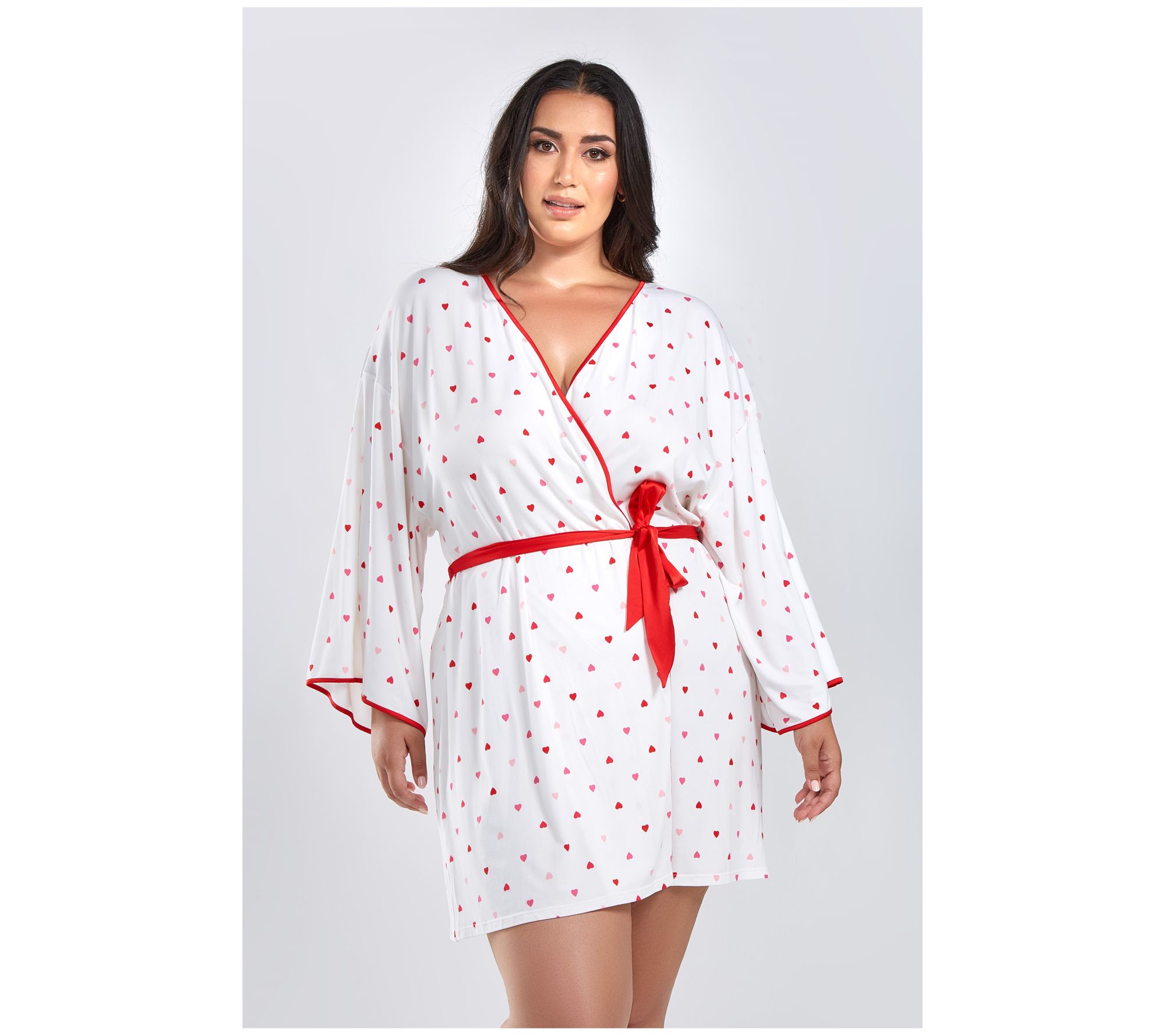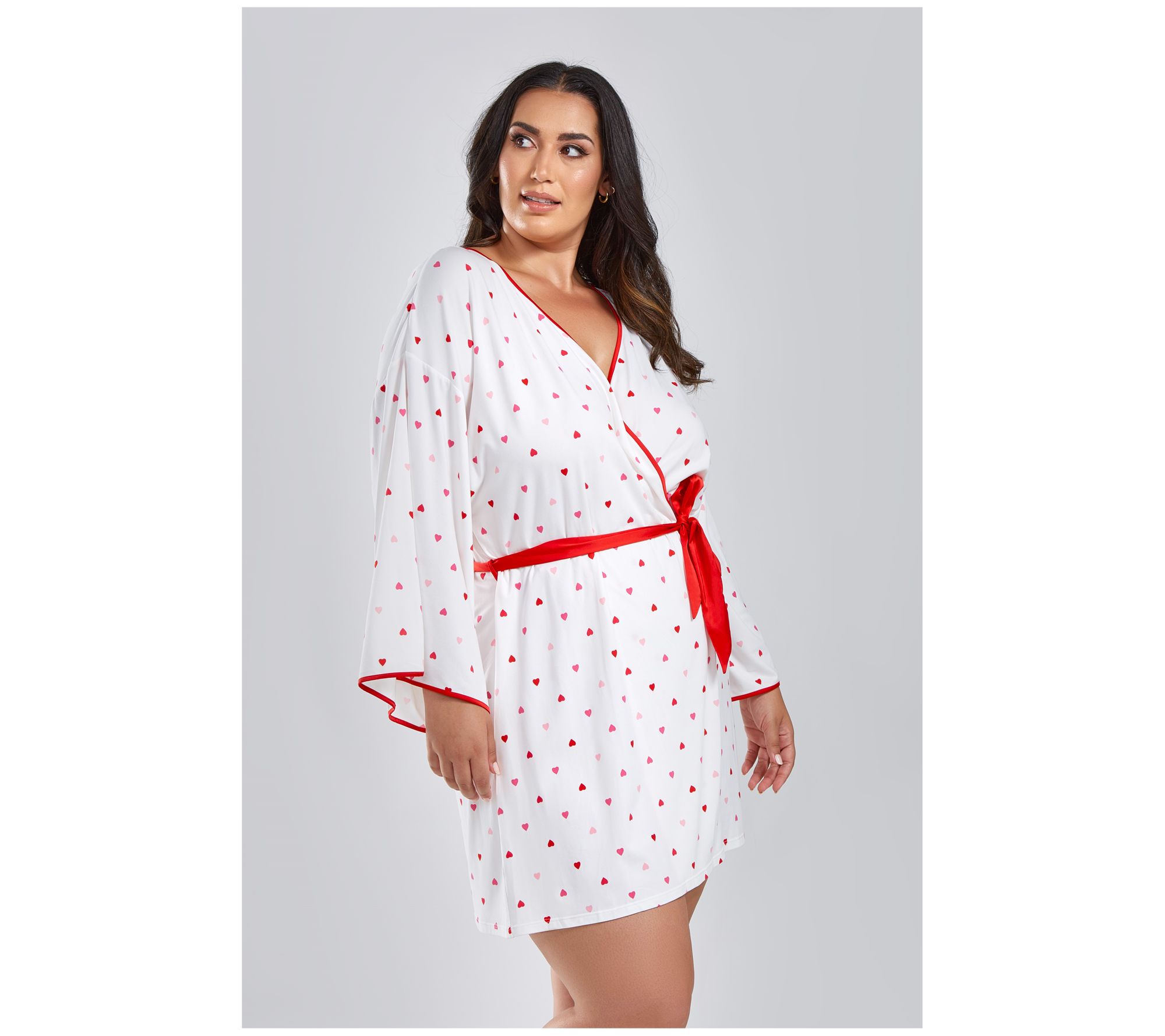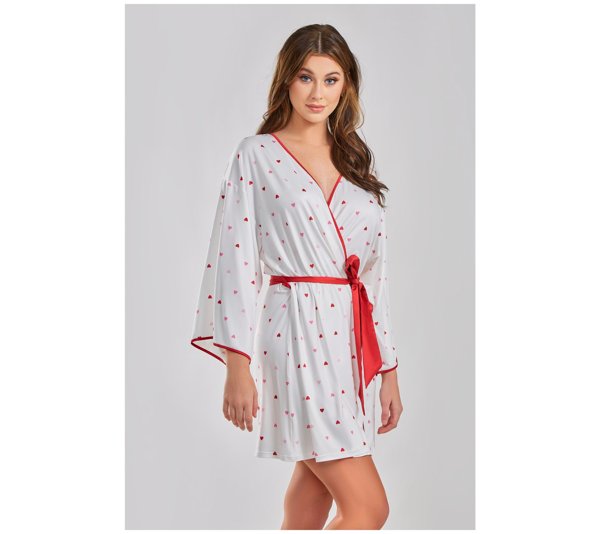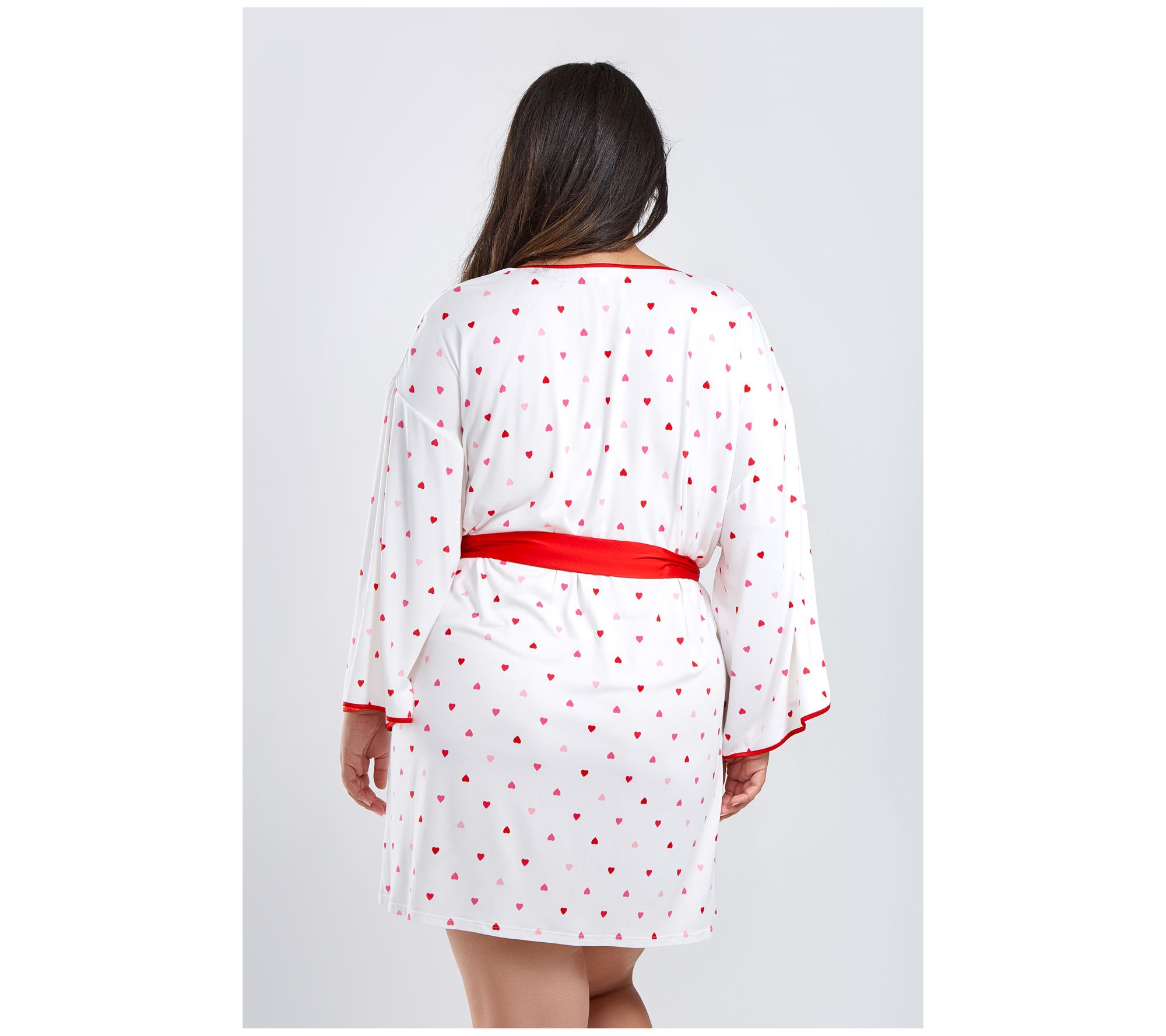 Bring a touch of romance to your lounging routine with this buttery-soft robe that features an allover heart pattern accented by red piping and a satiny sash. From iCollections.