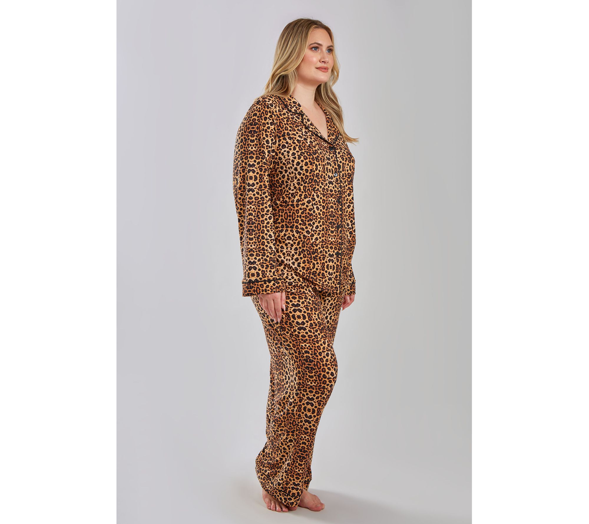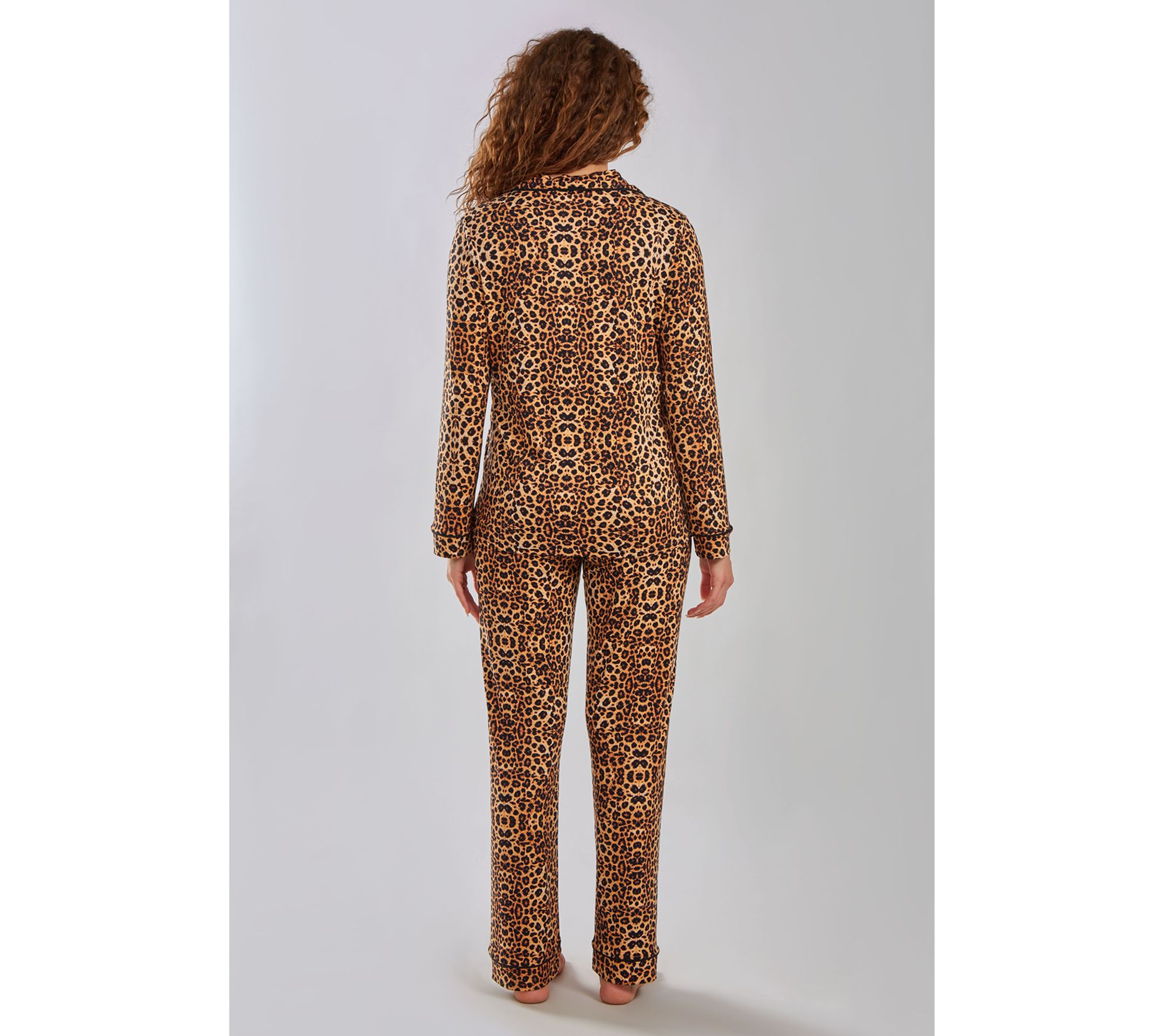 Take a restful walk on the wild side when you have this button-up lounge set, featuring a fun leopard pattern and buttery-soft fabric that wraps you in comfort. From iCollection.