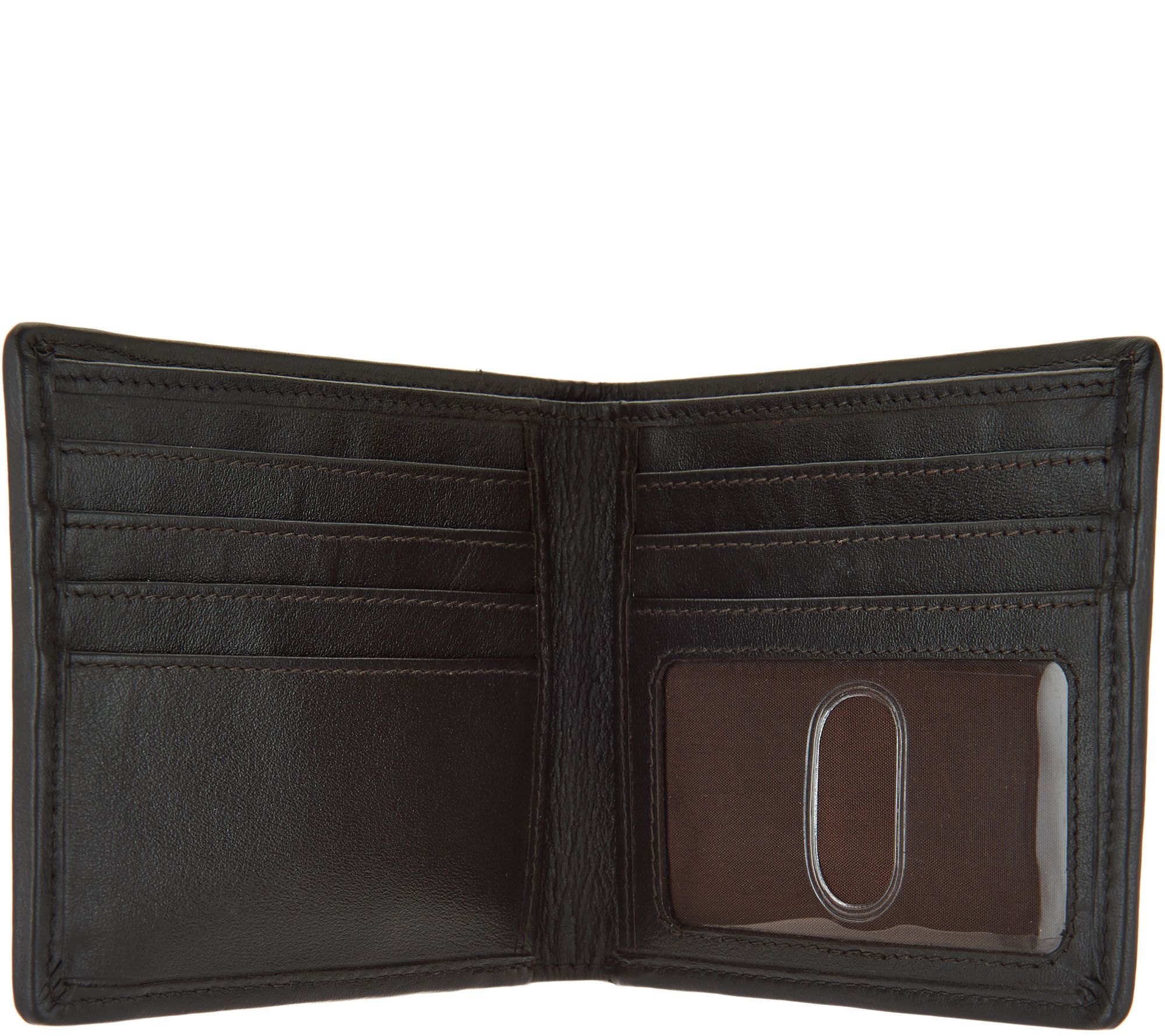 • Top cash slot, six credit card slots, clear ID slot, two interior slots beneath credit card slots