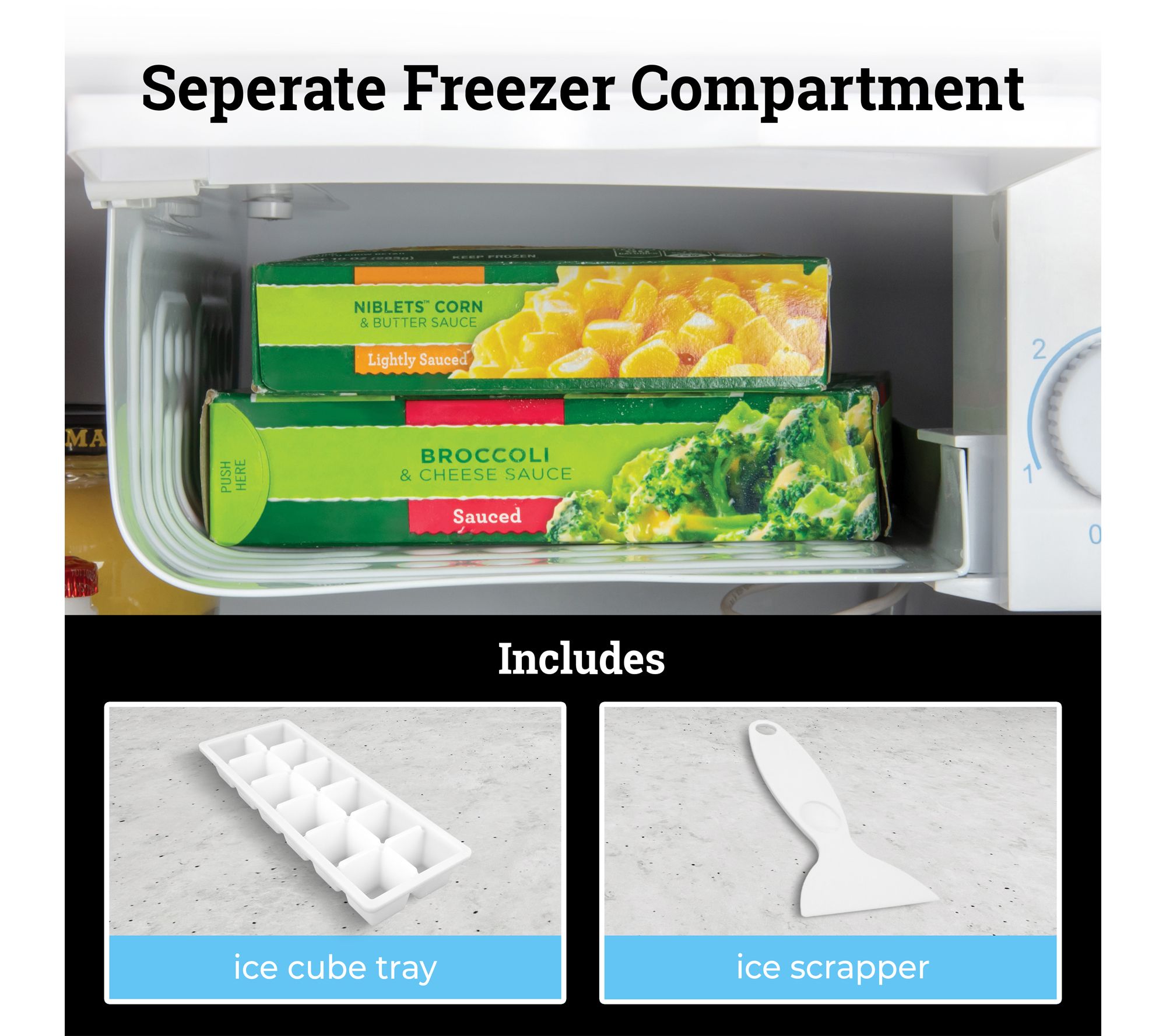 • Separate freezer compartment for added convenience