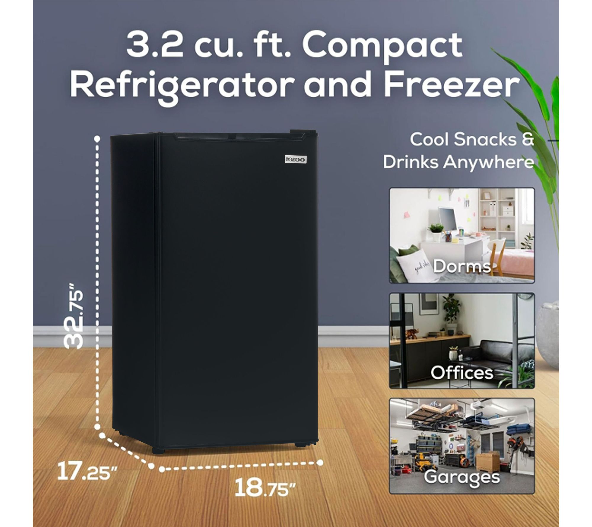 Quickly chill drinks and stock up on snacks -- this 3.2 cu. ft. refrigerator with freezer provides plenty of space for your favorite treats. Slide-out glass shelves, a built-in can dispenser, and adjustable mechanical temperature control make organizing everything from party sodas to lunch fixings a breeze. Ideal for dorms, home offices, basements, or rec rooms. From Igloo.
