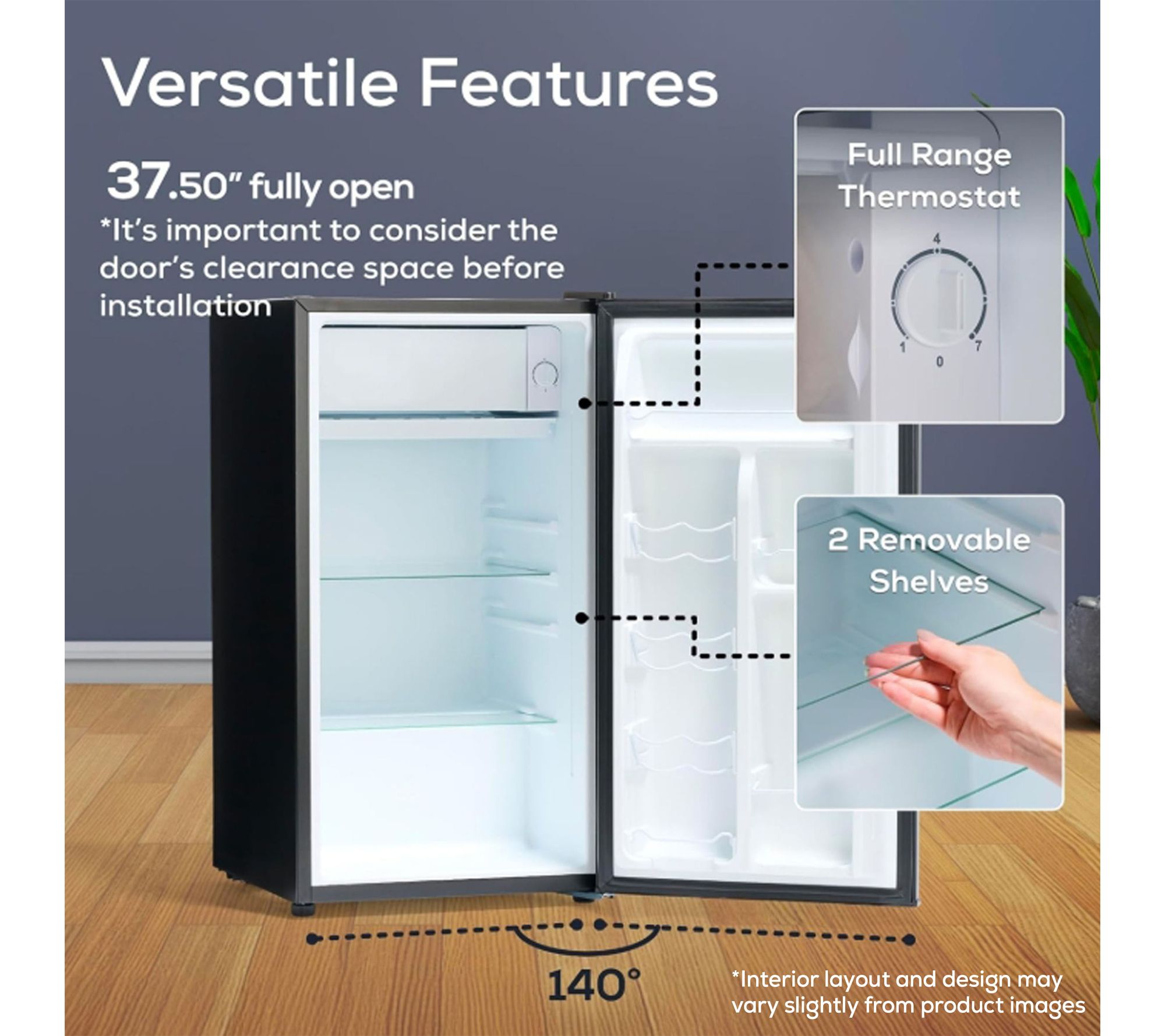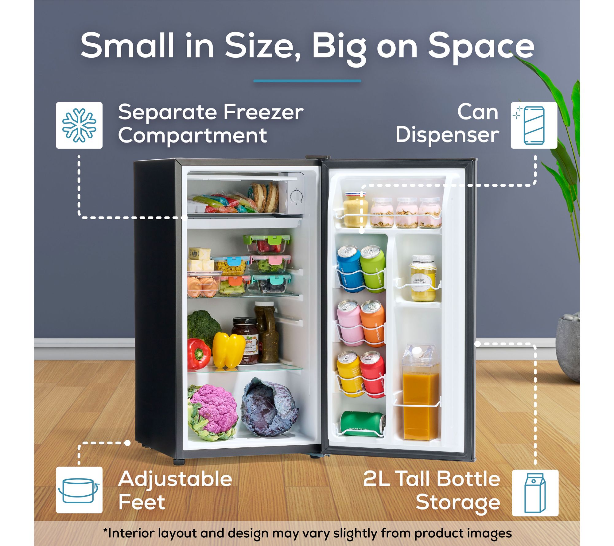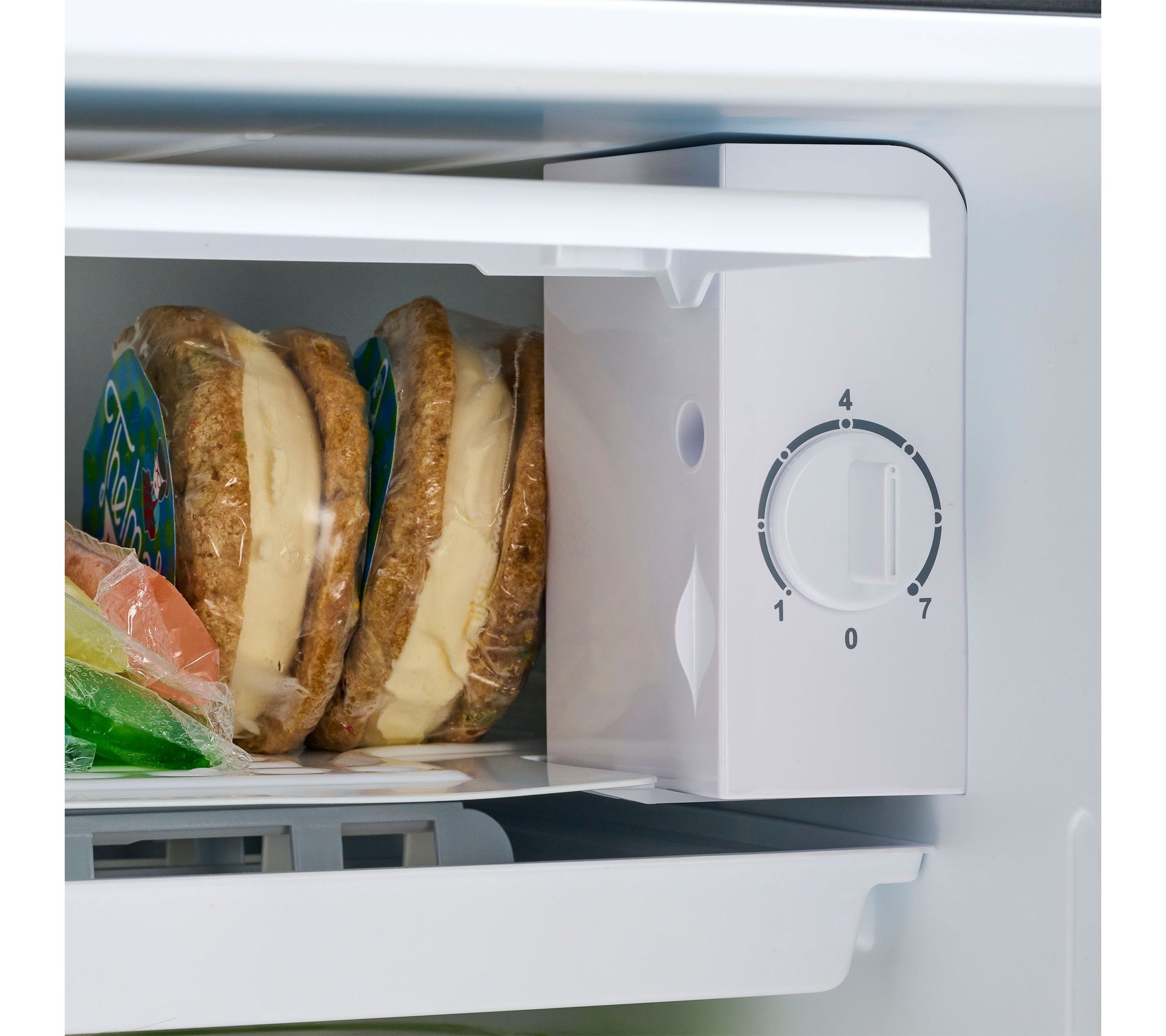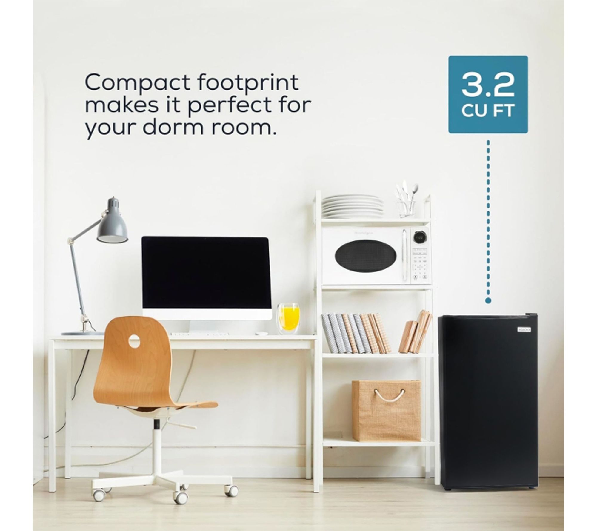 • Spacious 3.2 cu. ft. capacity for snacks, beverages, and frozen foods
