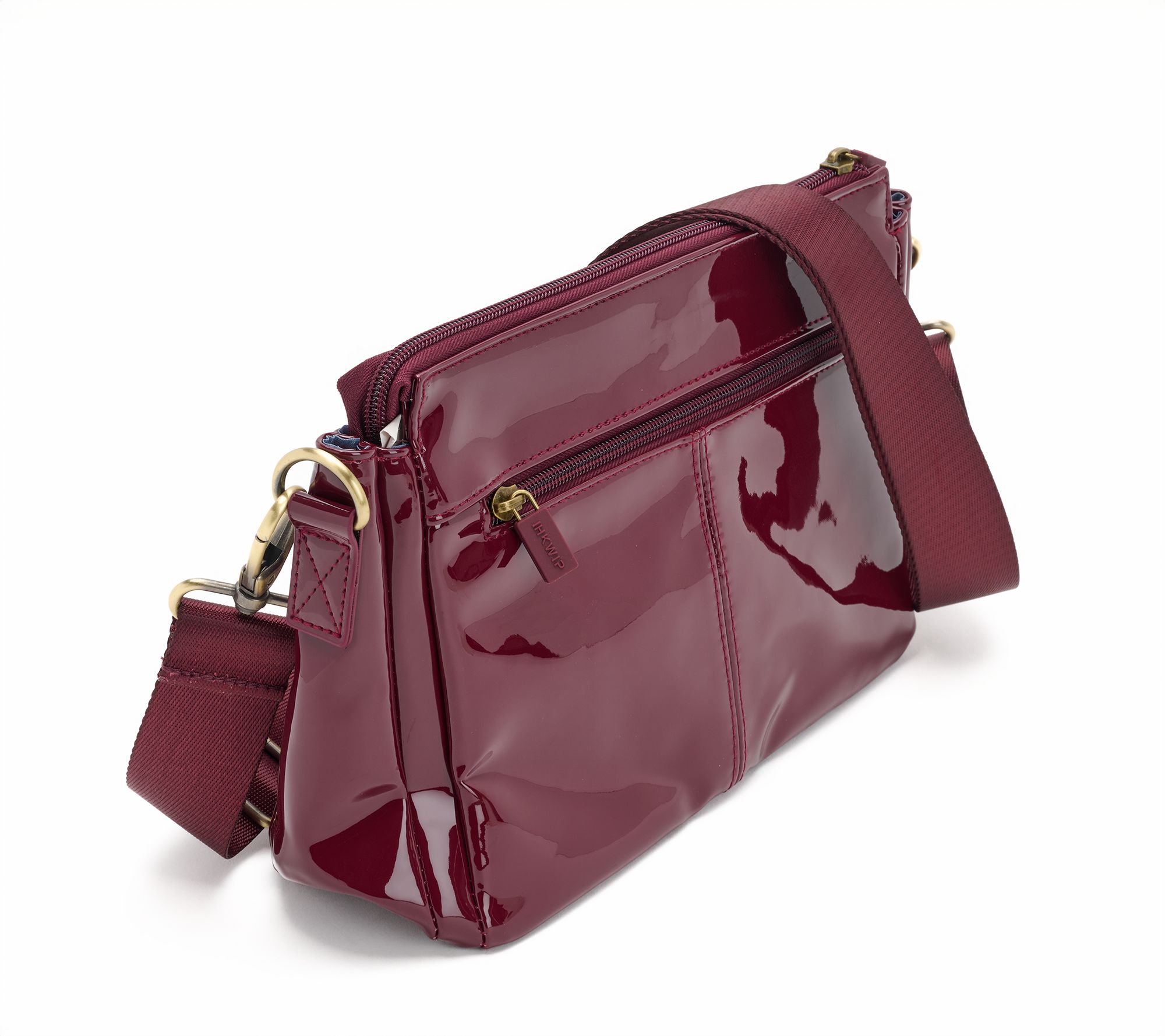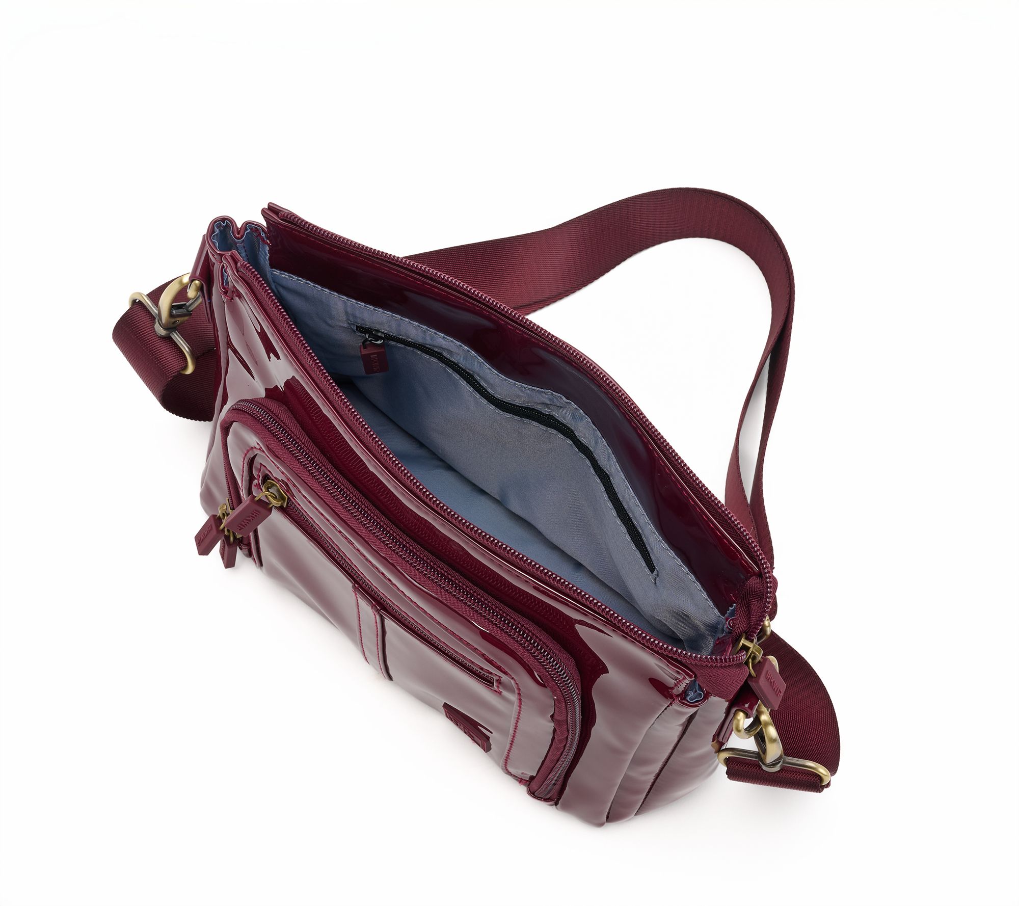 • Metallic Black/Metallic Midnight Blue/Patent Merlot/Patent Military Olive: outer 70% polyurethane/30% polyester; lining 100% recycled post-consumer polyester