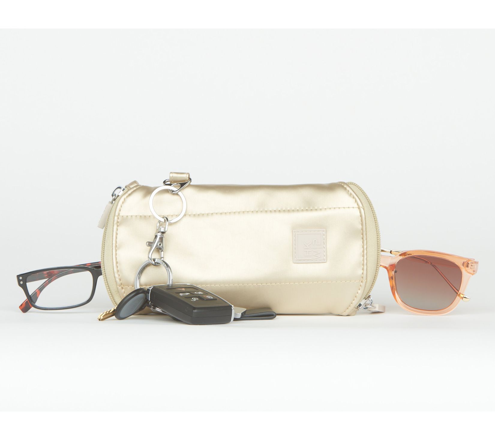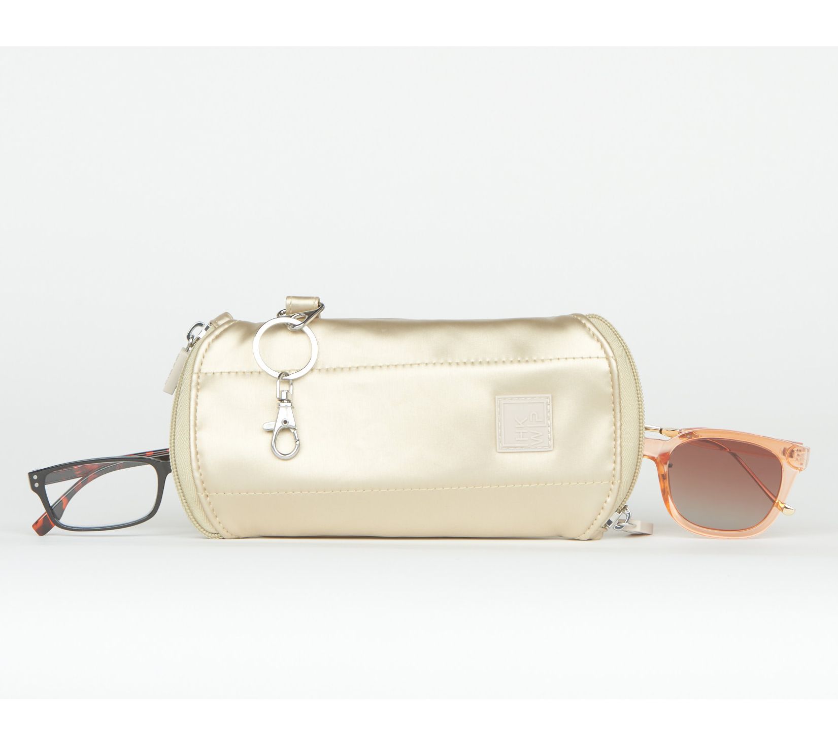 Need your readers and your sunnies -- but two cases won't commingle in your mini crossbody? IHKWIP for the win! This soft-lined glasses case keeps your eyewear protected and organized in two separate, zippered compartments, so the world is always in focus and fully shaded. This twofer take-along works great when you need one pair for close-ups and one for distance, too! The exterior keychain loop keeps keys handy -- and it's lightweight enough to take everywhere your busy day leads. From IHKWIP.