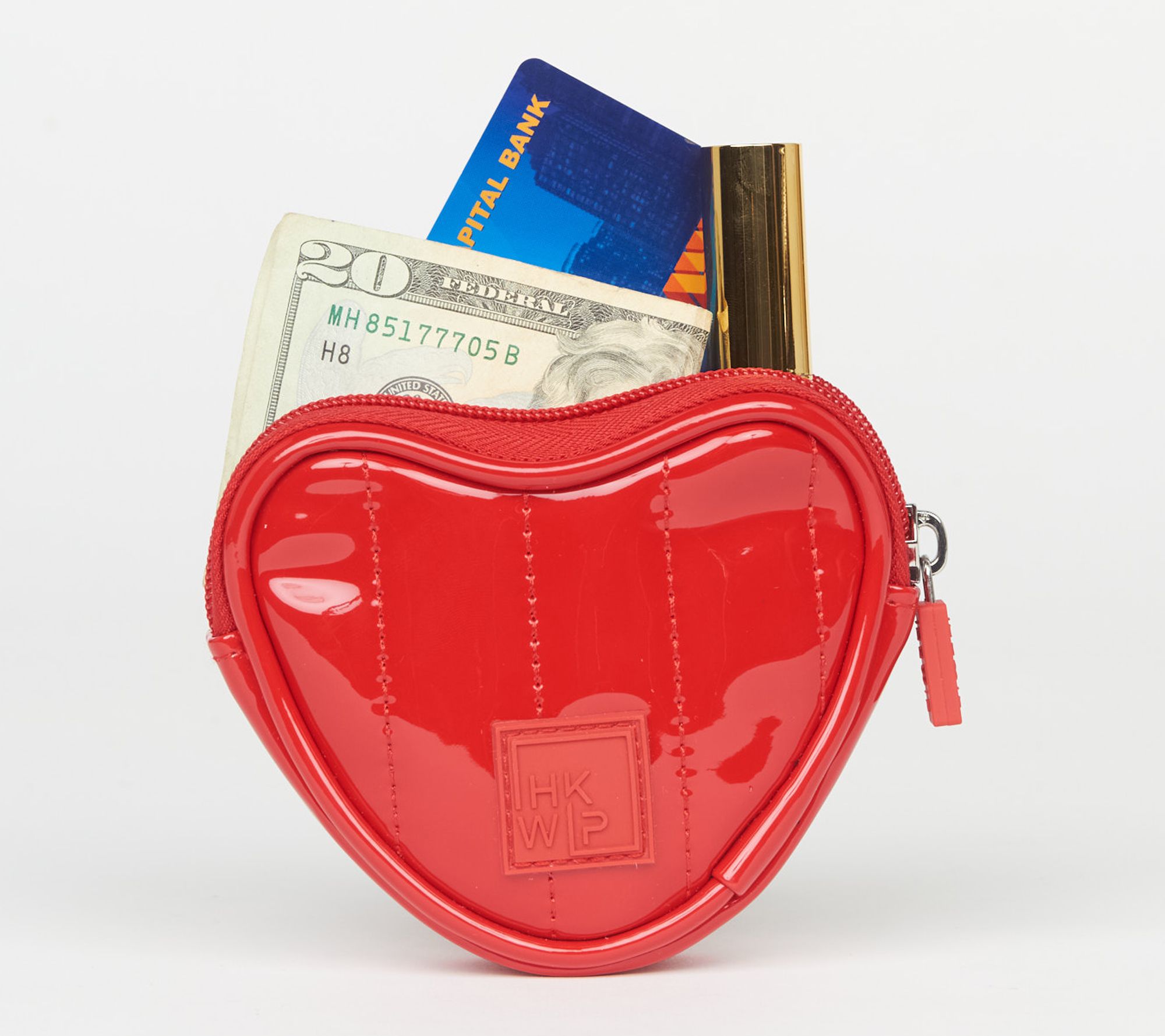Share your love for playful style wherever you go with this heart-shaped pouch (that's just right for keeping your smallest essentials handy at brunch, a date, or tucked inside your tote). The cheerful silhouette, textured stitching, and keychain clip make it fun to show off or snap onto your handbag for an instant pop of personality. From IHKWIP.