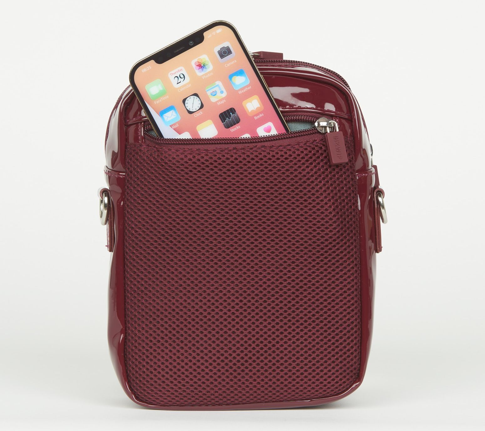 Measures approximately 6.25"L x 3.5"W x 9"H with a 28" to 56" strap drop; weighs 10 oz