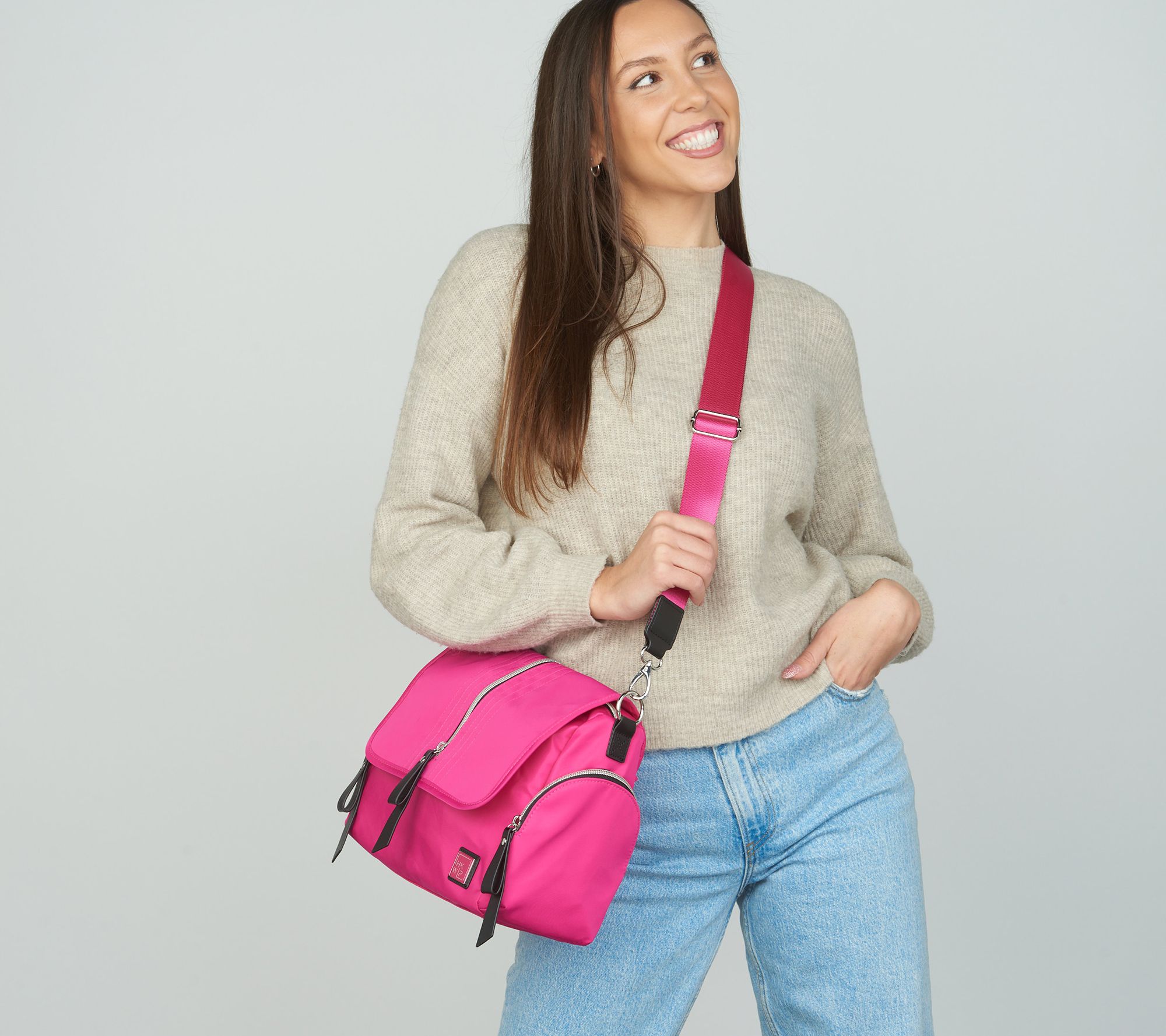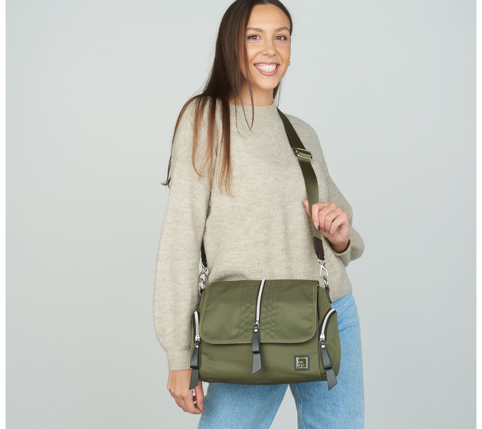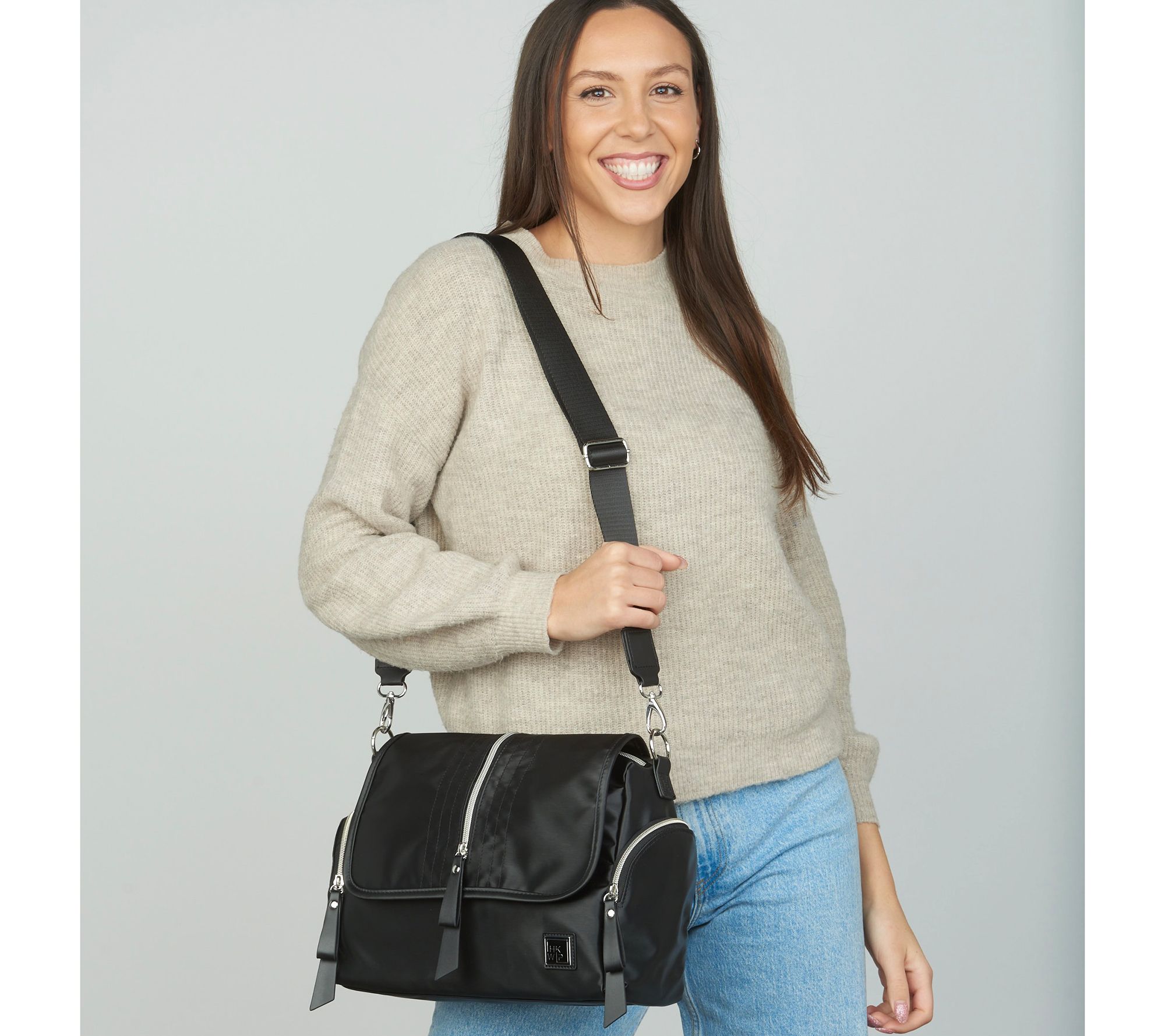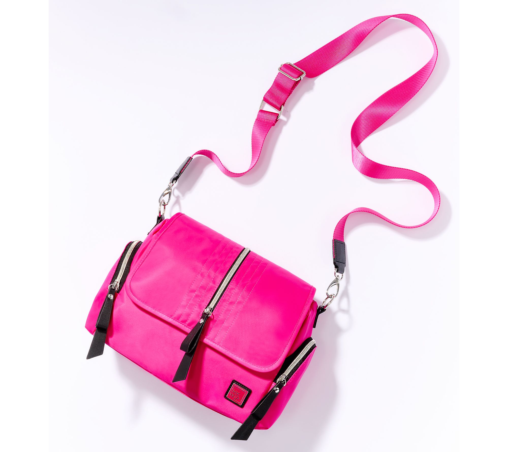 As sleek as it is stylish, this crossbody satchel is the perfect sidekick to keep you hands-free when you're on the go. The front zip compartment features a fashionable stitch detail and the rear zip pocket includes a soft lining to protect your cell phone, readers, and sunglasses from scratches. From IHKWIP.