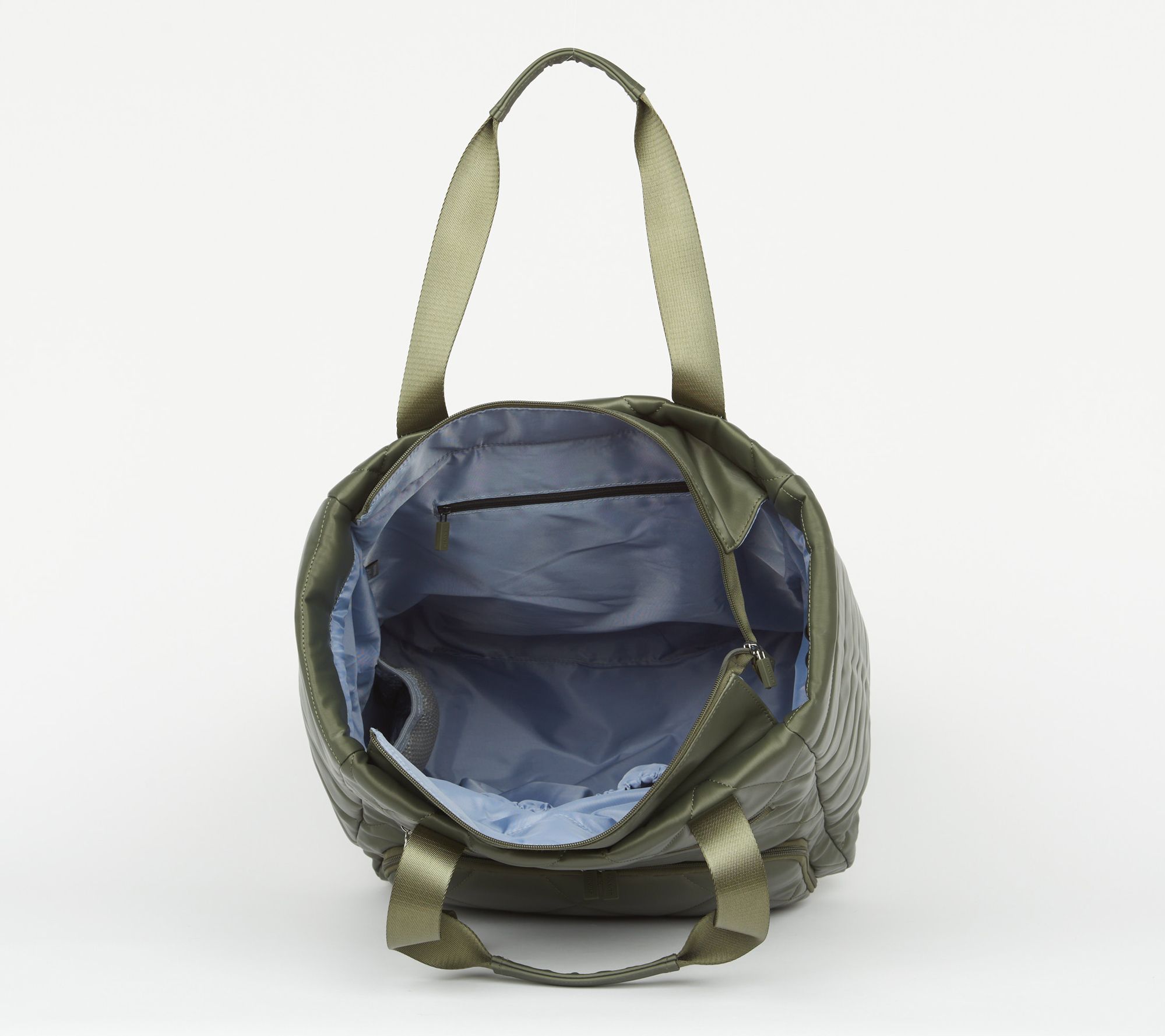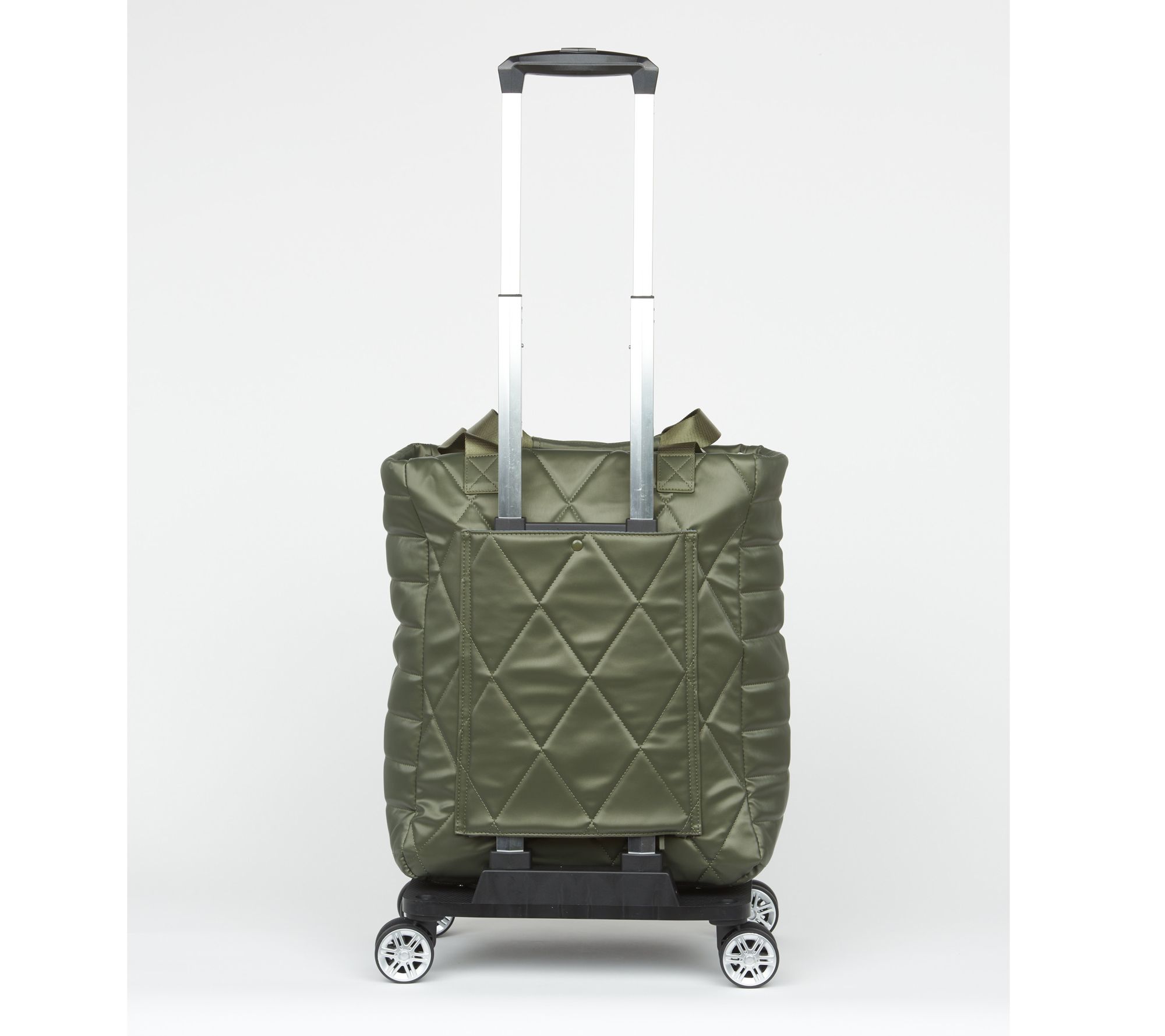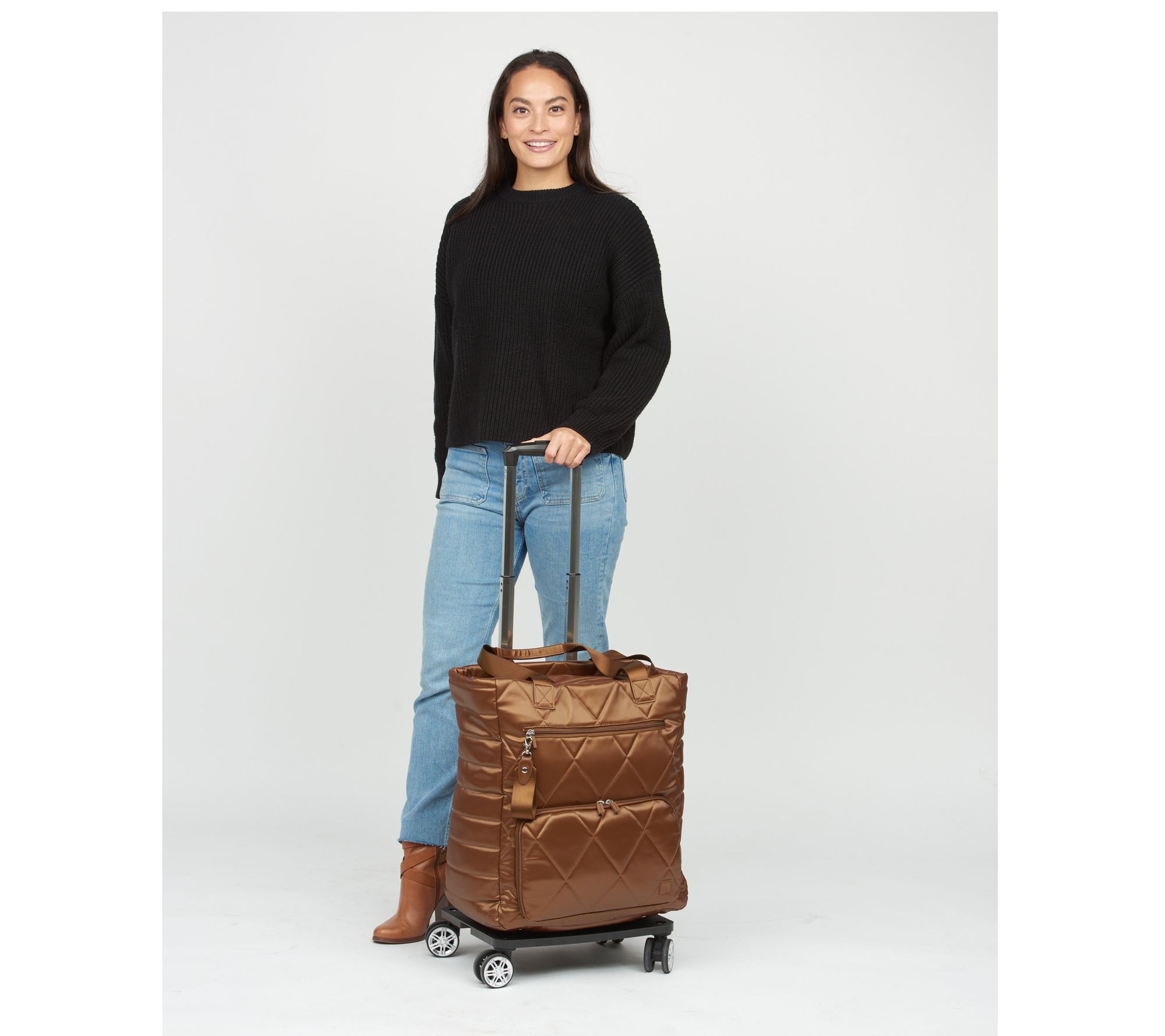 On the move? It's nice to have carry options. Upgrade your travel experience with this convertible roller tote, designed for easy movement and versatility. Carry it by the shoulder straps or roll it on its foldable trolley base with telescoping handles and four spinner wheels. Multiple pockets, a front zip compartment, and an interior key clip help you keep essentials organized and close at hand. Let's goooo! From IHKWIP.