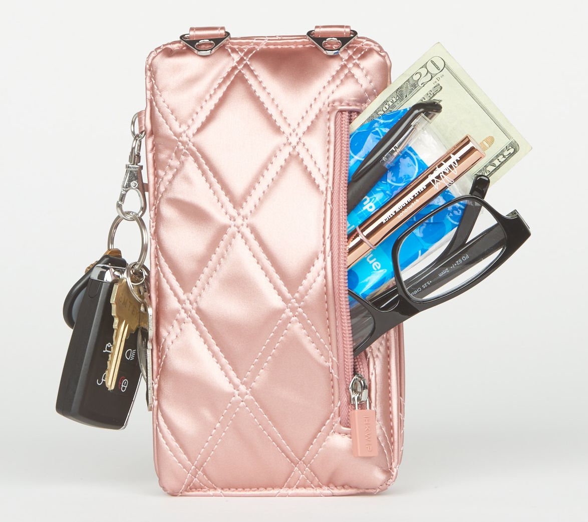 Designed for hands-free convenience, this crossbody bag is perfect for your busy lifestyle. It fits your cell phone and features a built-in RFID wallet with credit card slots and a clear ID window. The quilted exterior is water-repellent (so a little rain won't dampen your spirits!), while the adjustable elastic snap closure means it can accommodate nearly any phone. From IHKWIP.