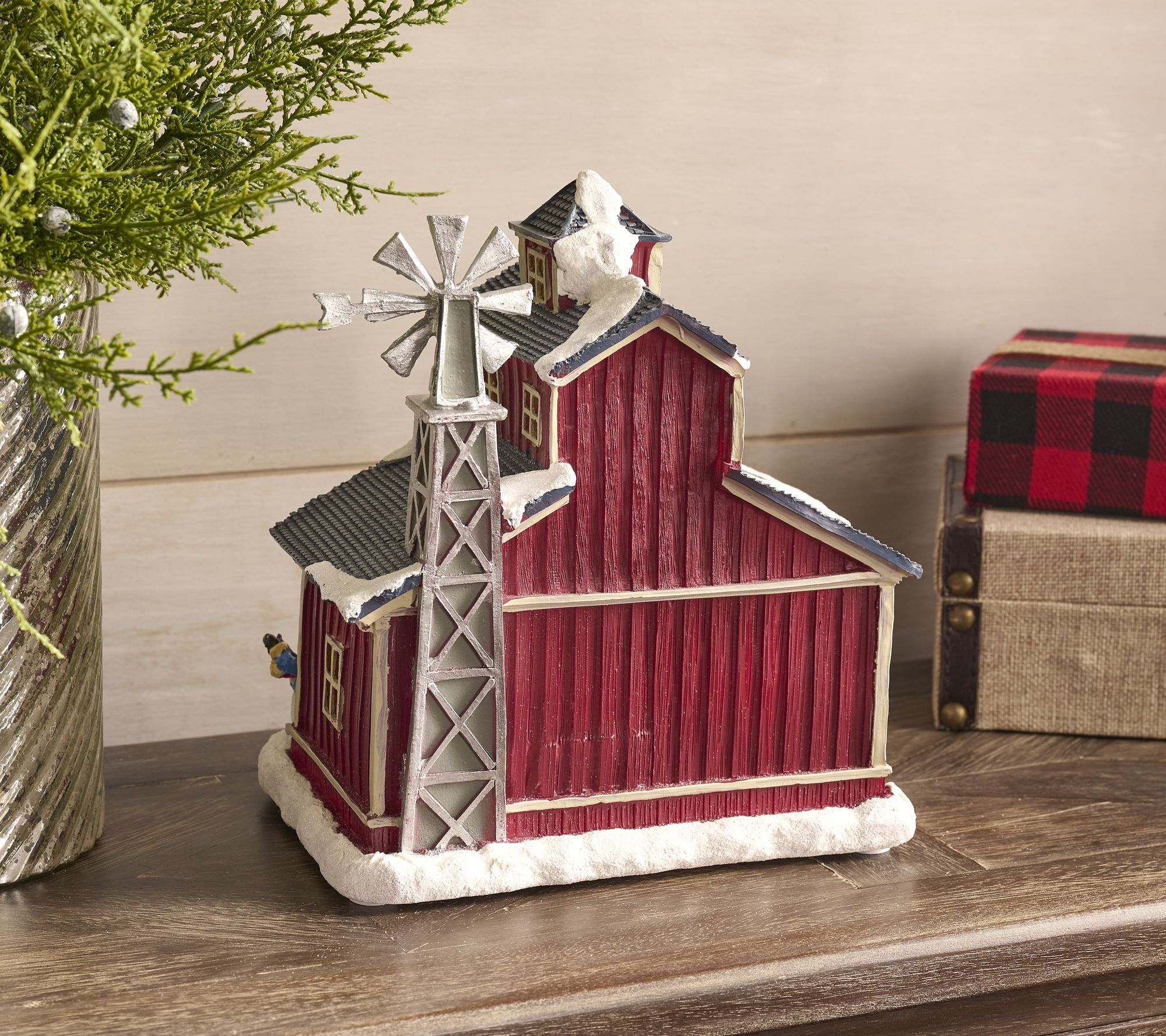 Twinkling lights and snowy shimmer surround this barn, bringing farmhouse magic to your holiday display. With its cheerful truck, a friendly snowman, and frosty accents, this illuminated resin barn creates a welcoming centerpiece on a mantel or entryway table. From the Valerie Parr Hill Collection.