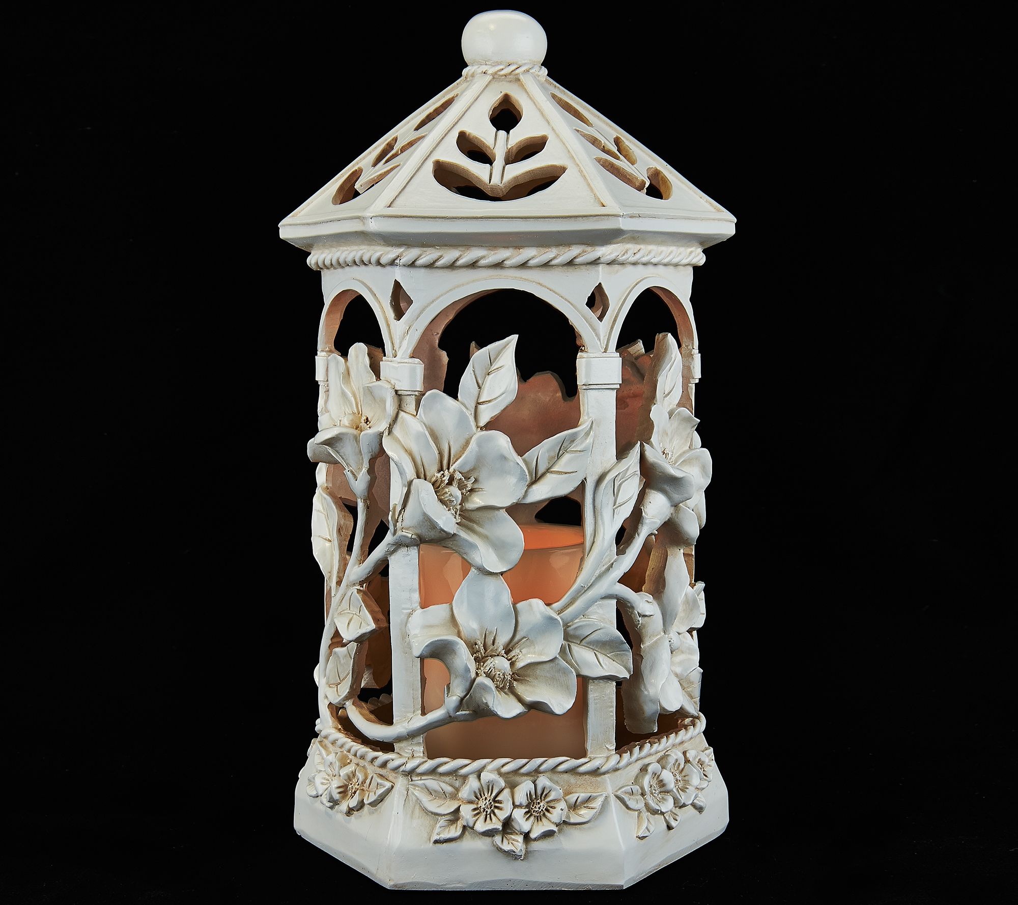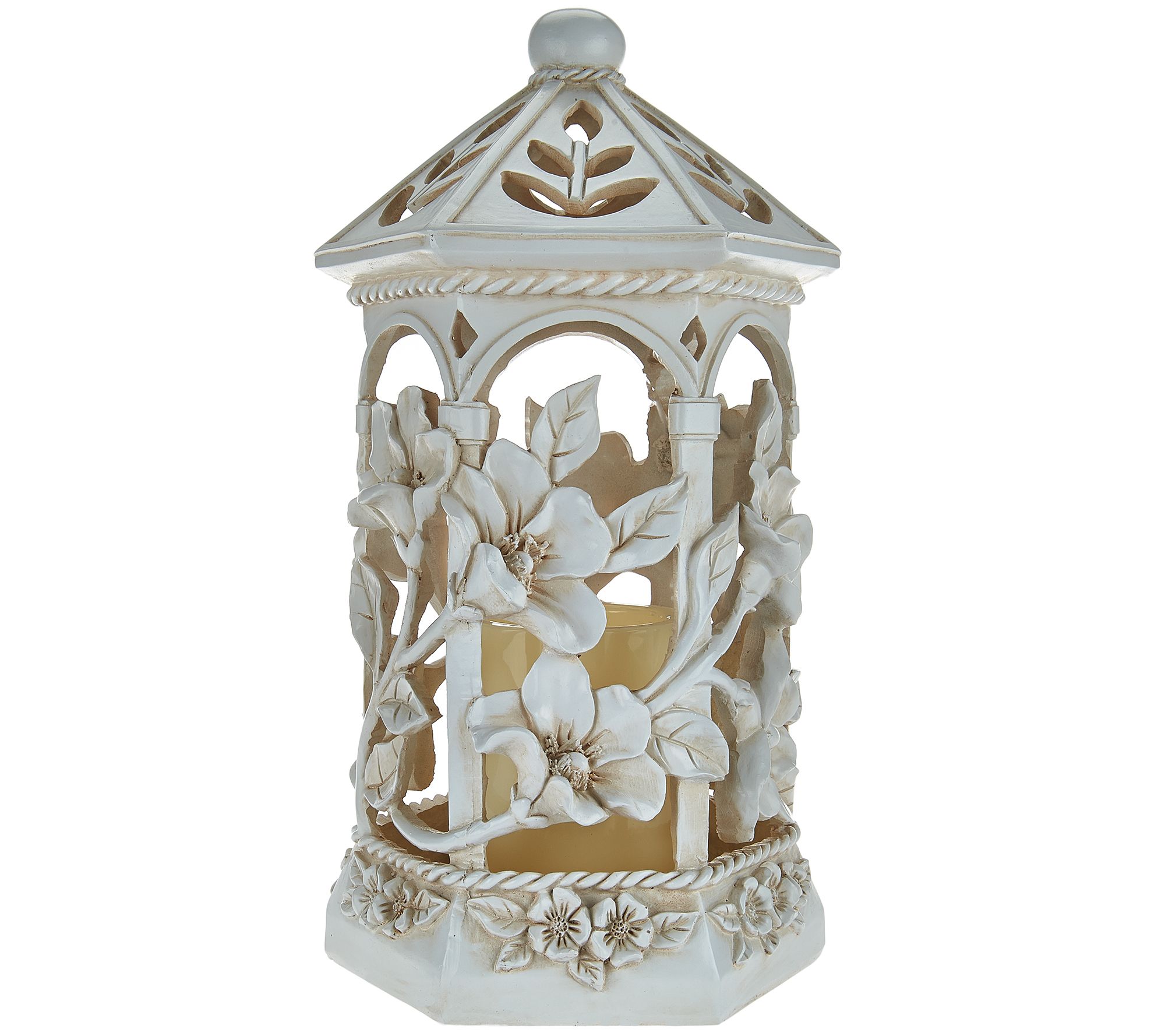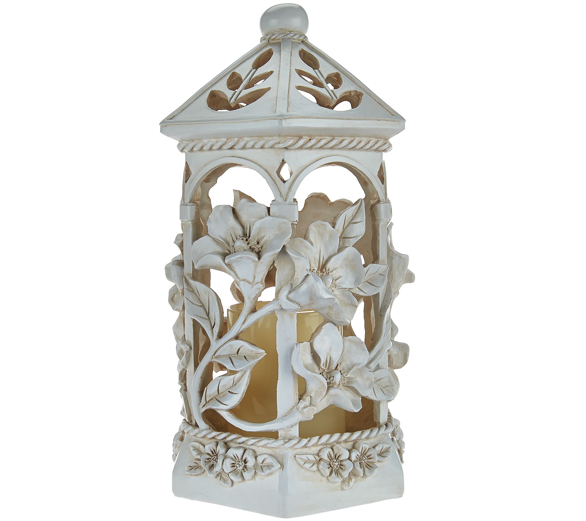 Spring has sprung inside your home with the addition of this lovely illuminated floral lantern from Home Reflections. The free-flowing blooms pair with the glow from the flameless candle within for a truly intriguing addition to your decor. From Home Reflections(R) Flameless Decor.