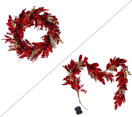 Approximate measurements: Wreath 24"Diam x 5"L; Garland 5'L x 6"W