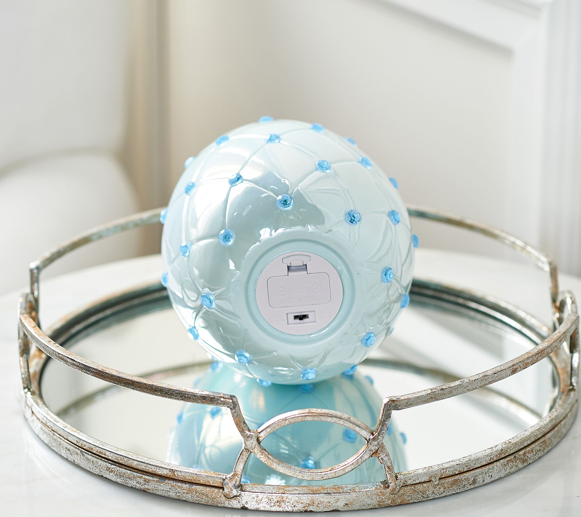 Illuminated Iridescent Porcelain 8" Jeweled Egg by Valerie