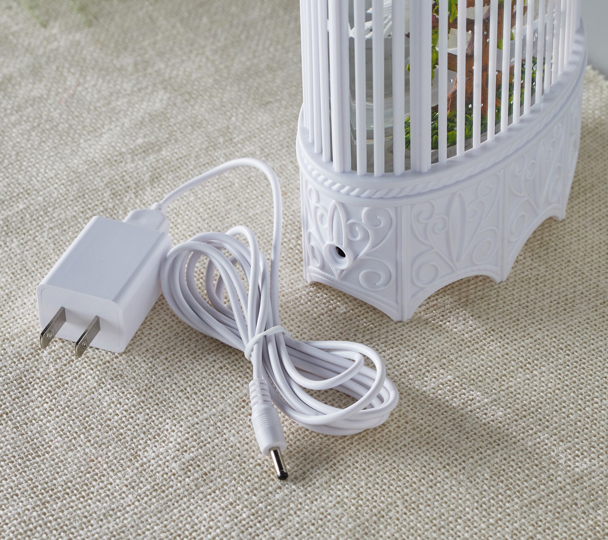 Includes illuminated birdcage-shaped lantern and AC adaptor