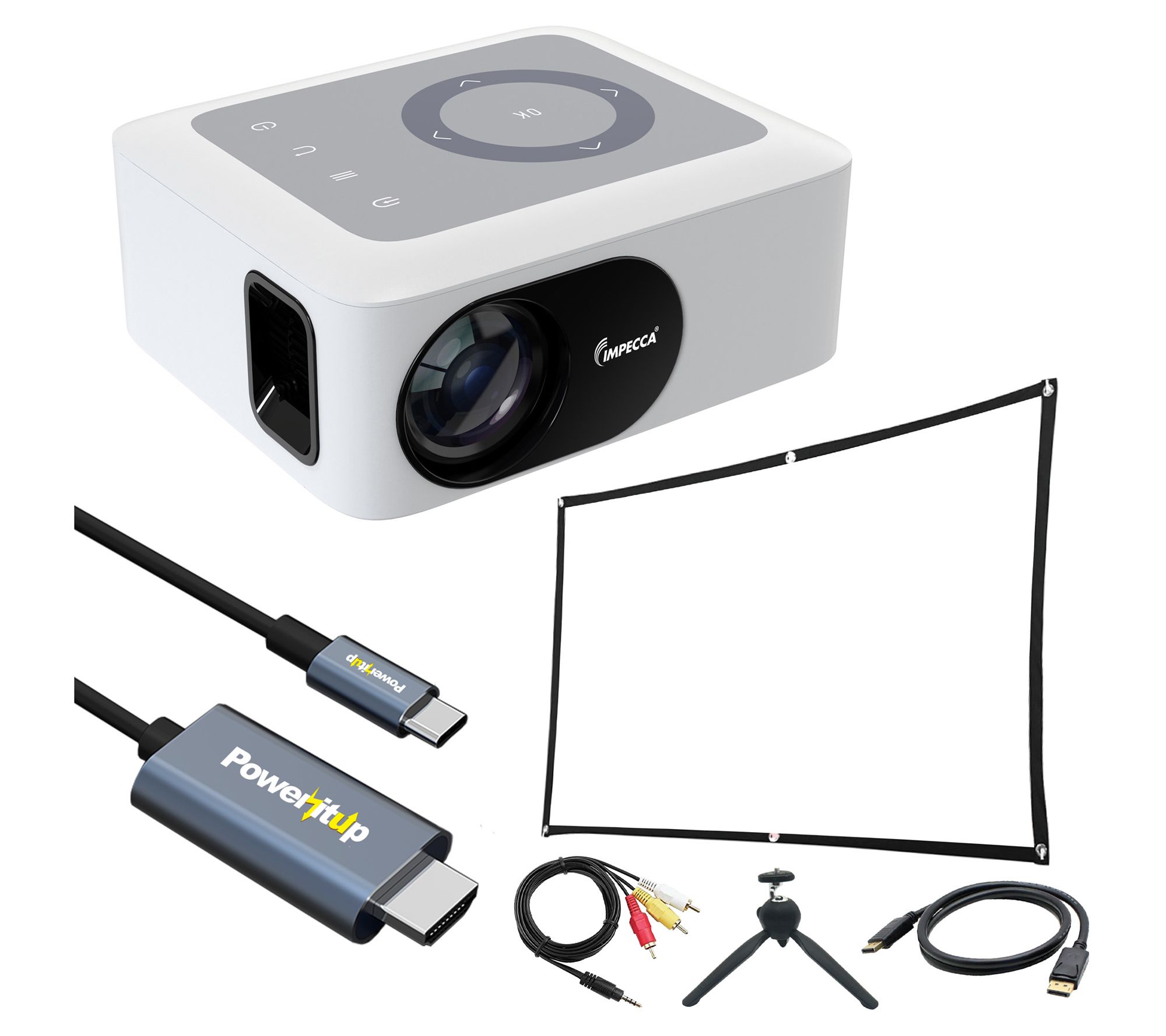 Turn your living room into a theater with the Impecca Home Theater Projector. Imagine watching your favorite movies, gaming, or giving presentations on a vivid 720P HD screen with support for up to 1080P. Its built-in Bluetooth 5.0 allows you to stream audio seamlessly to speakers or headphones, or use the built-in 3W stereo speaker for immediate sound. From Impecca.