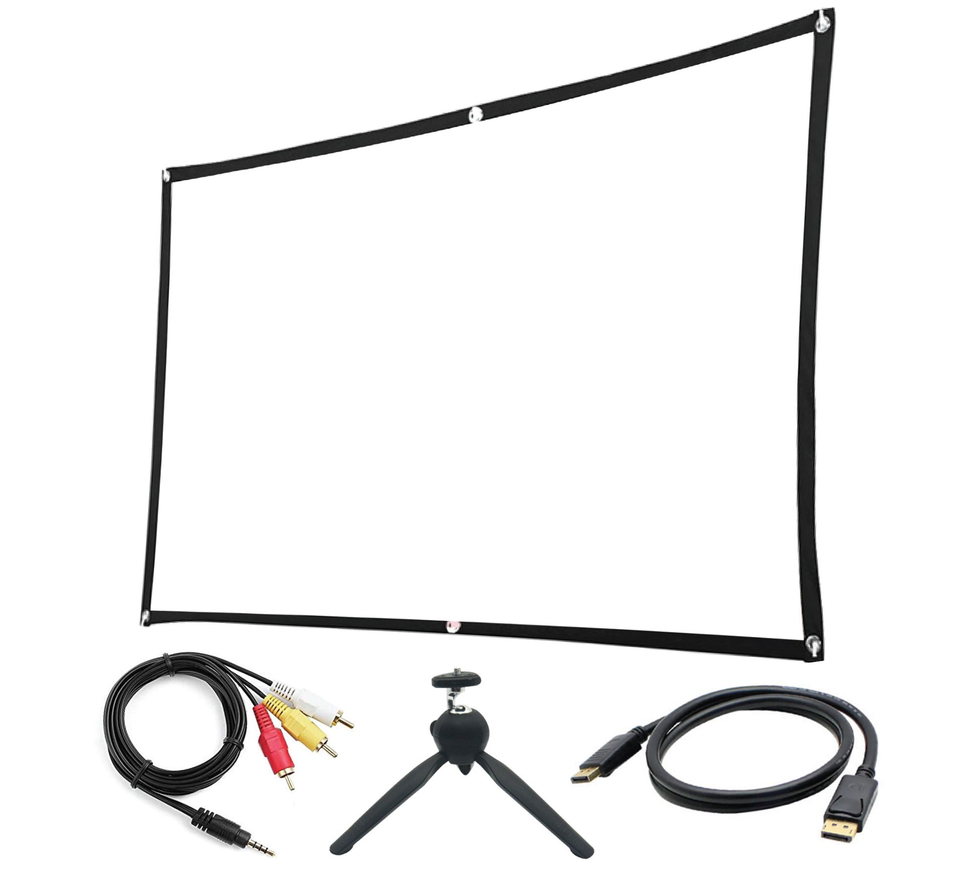 • Includes projector model VP-102W, AC power adapter, remote control, HDC-206 USB-C to HDMI cable, Home Theatre Accessory Kit with 100" white projector screen, tabletop tripod, 6' HDMI cable, AV cable assembly