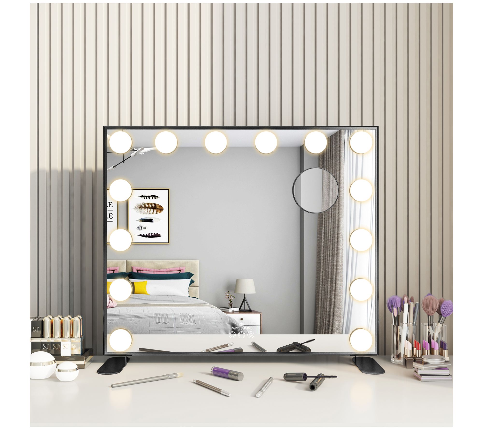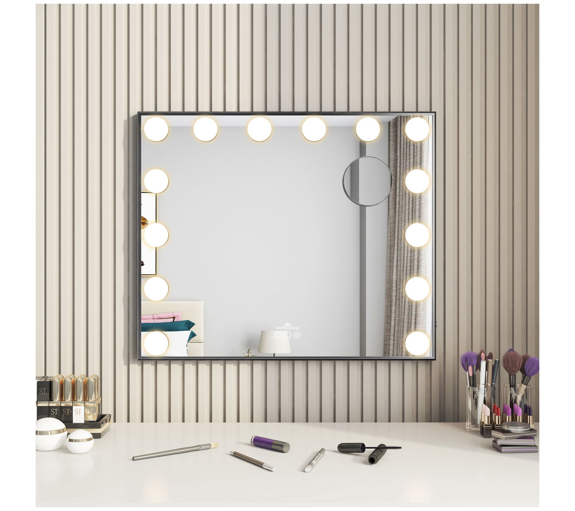 Get glam with the Impressions Hollywood Tri-Tone Plus Makeup Mirror. Customize your look for any light with adjustable LED brightness and natural, warm, or cool lighting settings. A 5X magnetic magnifying detail mirror helps complete those close-up tasks, like perfecting your eye liner or mascara. From Impressions.